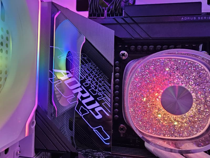 Радиатор VRM, идущий вдоль заднего блока портов, имеет кожух, прикрывающий тот самый блок, оснащенный подсветкой.