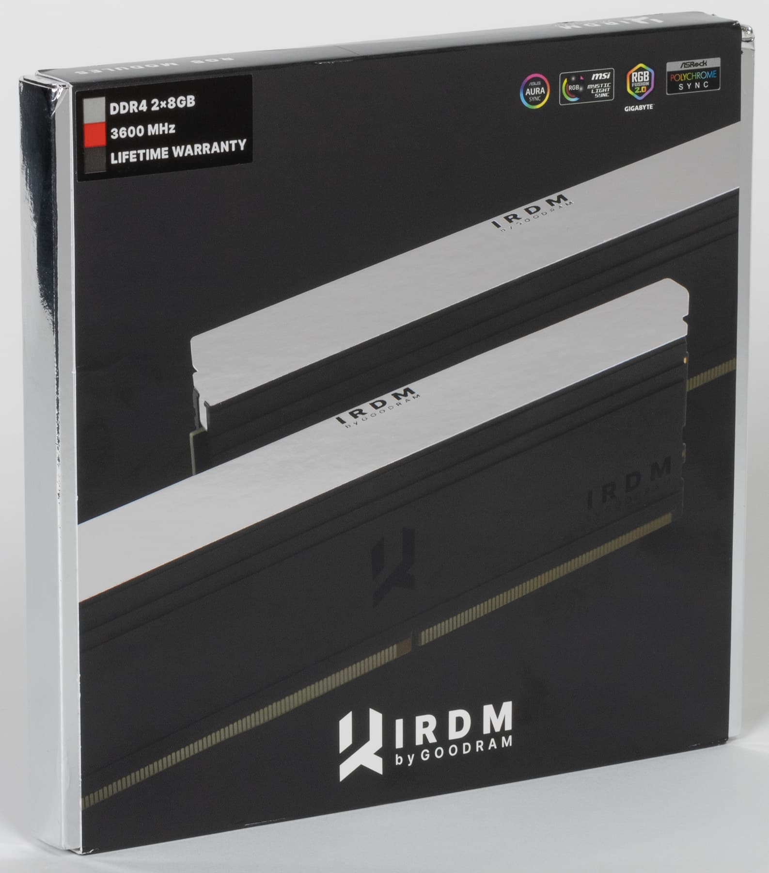 В итоге соответствующие модули появились уже практически у всех производителей. В том числе — и достаточно консервативных, типа знакомой многим польской компании Wilk Elektronik SA. Основной упор в ее ассортименте пока остается на «традиционные» модули с разноцветными радиаторами, но осенью уходящего года появилась и линейка GoodRAM IRDM RGB DDR4. Впрочем, «линейка» — пока еще слишком громко сказано: доступен всего один набор из двух модулей DDR4-3600 по 8 ГБ каждый. В других семействах есть и 8, и 16, и парами, и по одиночке, и тактовые частоты достигают уже 4000 МГц. А с подсветкой — пока всего один вариант. Но вариант небезынтересный, поэтому мы решили познакомиться с ним поближе.