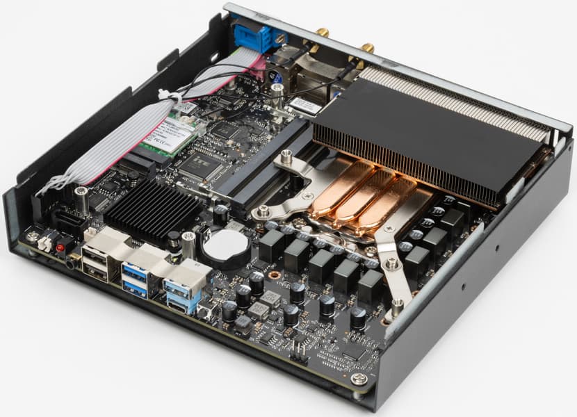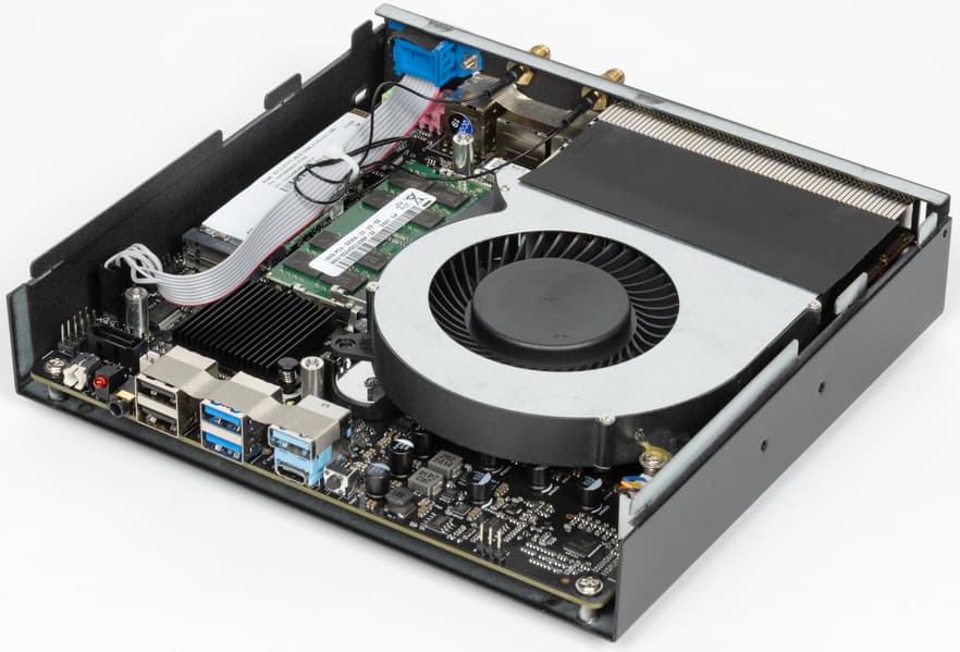 Наиболее крупный узел — кулер системы охлаждения. Это компактное низкопрофильное устройство, которое вполне адекватно остальным компонентам.