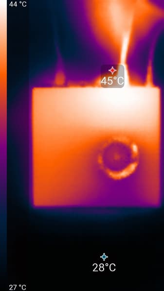 А теплоснимки ниже показывают нагрев корпуса ПК и блока питания при использовании «тихой» прошивки: