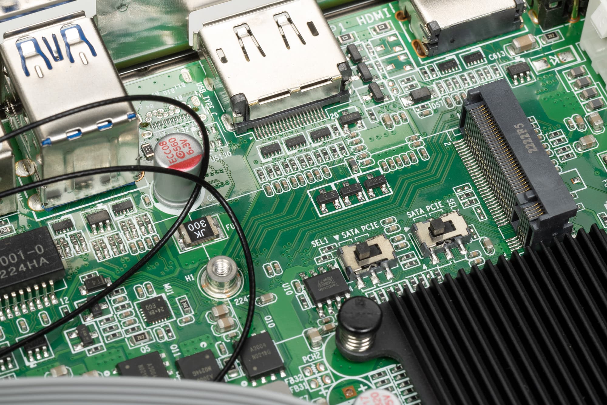Единственное, что потребуется — переключить режим работы, что на этой плате делается парой механических переключателей. Если, конечно, такая необходимость возникнет — с учетом основного целевого назначения компьютера в такой конфигурации можно ничего не менять и дополнительные накопители не добавлять. С другой стороны, конфигурация вообще может измениться, да и кроме модернизации бывает и просто ремонт. Который возможен — заменить можно всё. Вплоть до системной платы — ведь конструктивно перед нами сами обычный десктоп. Просто компактный.