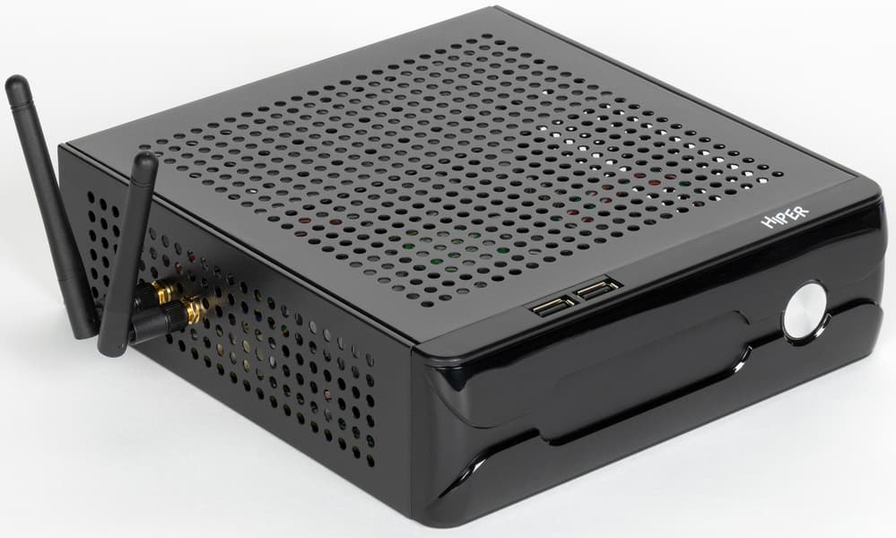 При этом моноблоки — все-таки по-прежнему вещь в себе. Даже если говорить про модели на десктопных комплектующих, всё равно остается привязка к конкретной ЖК-матрице, что на деле устраивает далеко не всех. Full HD с диагональю в районе 24” — давно уже своеобразный стандарт де-факто, однако спросом пользуются и бо́льшие диагонали. Но таких моноблоков куда меньше, а среди бюджетных моделей — совсем мало. Поэтому зачастую лучше раздельный подход. А чтоб не терять в компактности, можно приобрести мини-ПК вместо «большого» системного блока. Разумеется, это накладывает ограничения и на его «начинку», однако несложно заметить, что большинство самых продаваемых компьютеров таковы, что... В маленький корпус тоже поместятся. Лучше всего продаются процессоры среднего класса, в большинстве компьютеров лишь один накопитель (реже — два), дискретная графика стала уже отличительной особенностью специализированных (хотя бы игровых) компьютеров, но массовый покупатель прекрасно обходится и без нее. Когда-то лимитирующим фактором оказывались размеры привода оптических дисков, но и оптика уже с массового рынка ушла. Поэтому зачастую оптимальным решением оказывается что-нибудь типа Hiper M9. Который, по сути, обычный массовый десктоп — просто маленький.