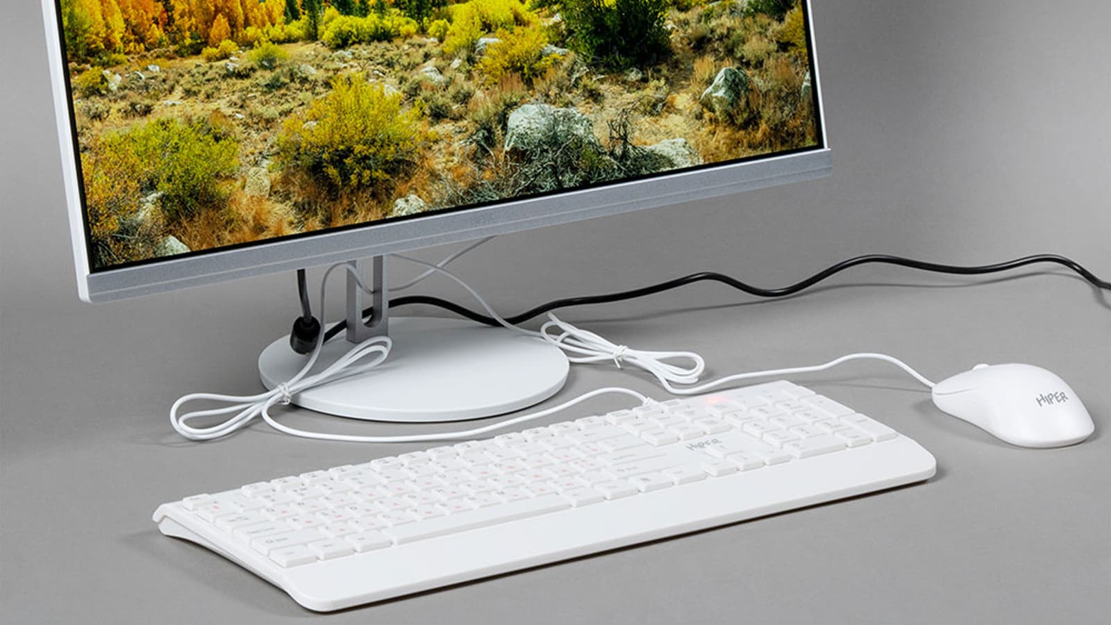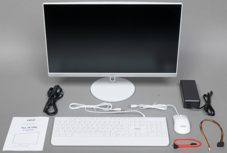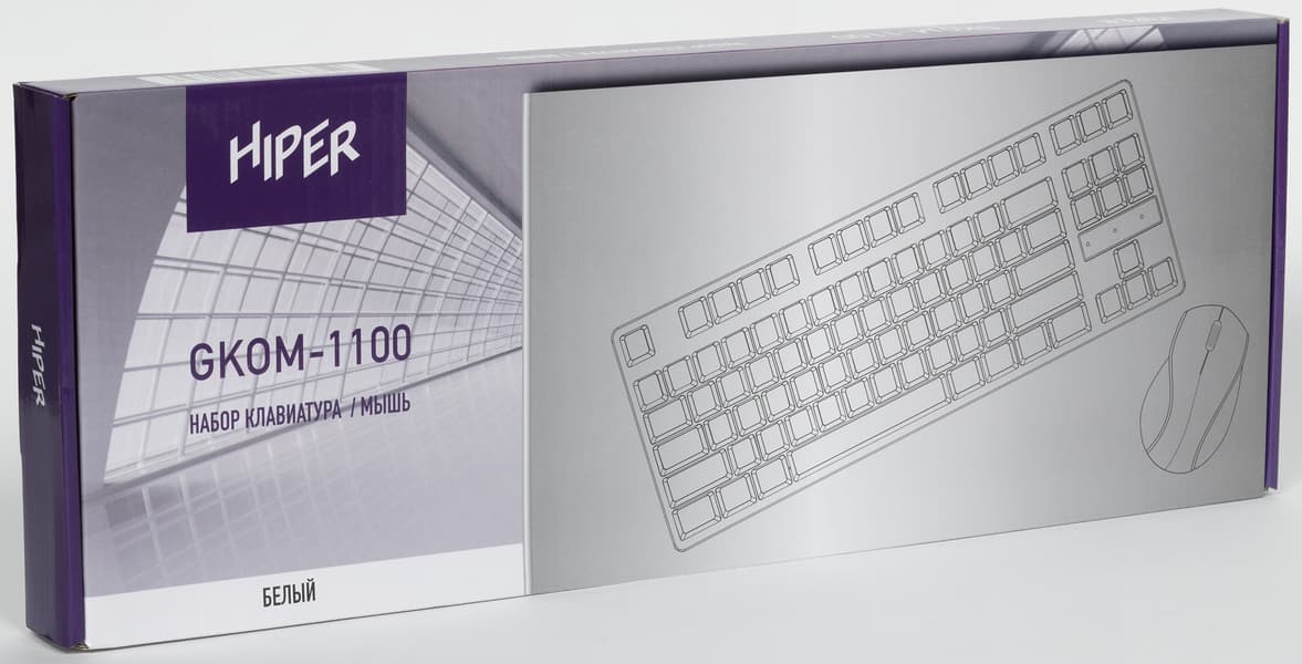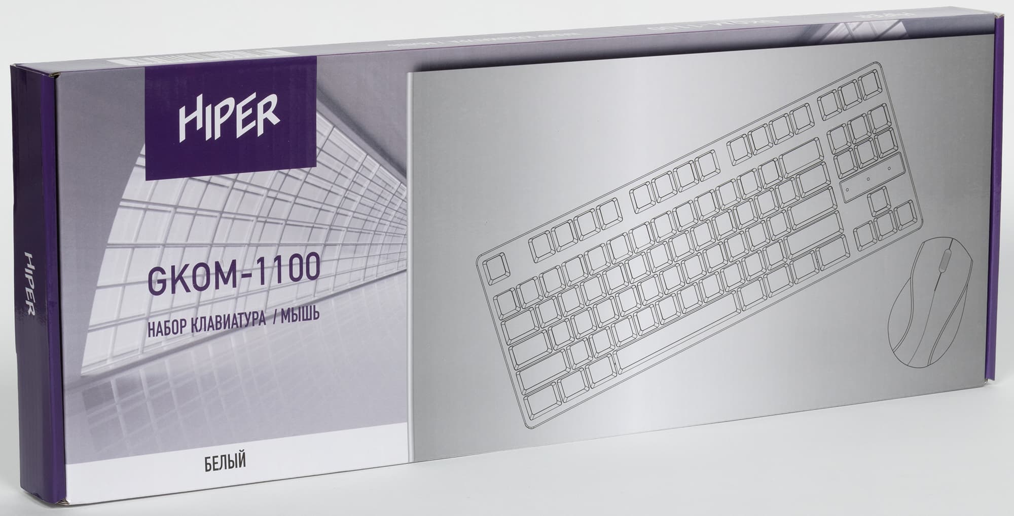 При этом о разработке каких-то специальных моделей речь, как и в предыдущем случае не идет — просто вложена еще одна коробка с проводным набором Hiper GKOM-1100. В комплекте с Hiper V6 был GKOM-1000, но различаются они только цветом: с белым моноблоком, естественно, лучше сочетается периферия белого же цвета.