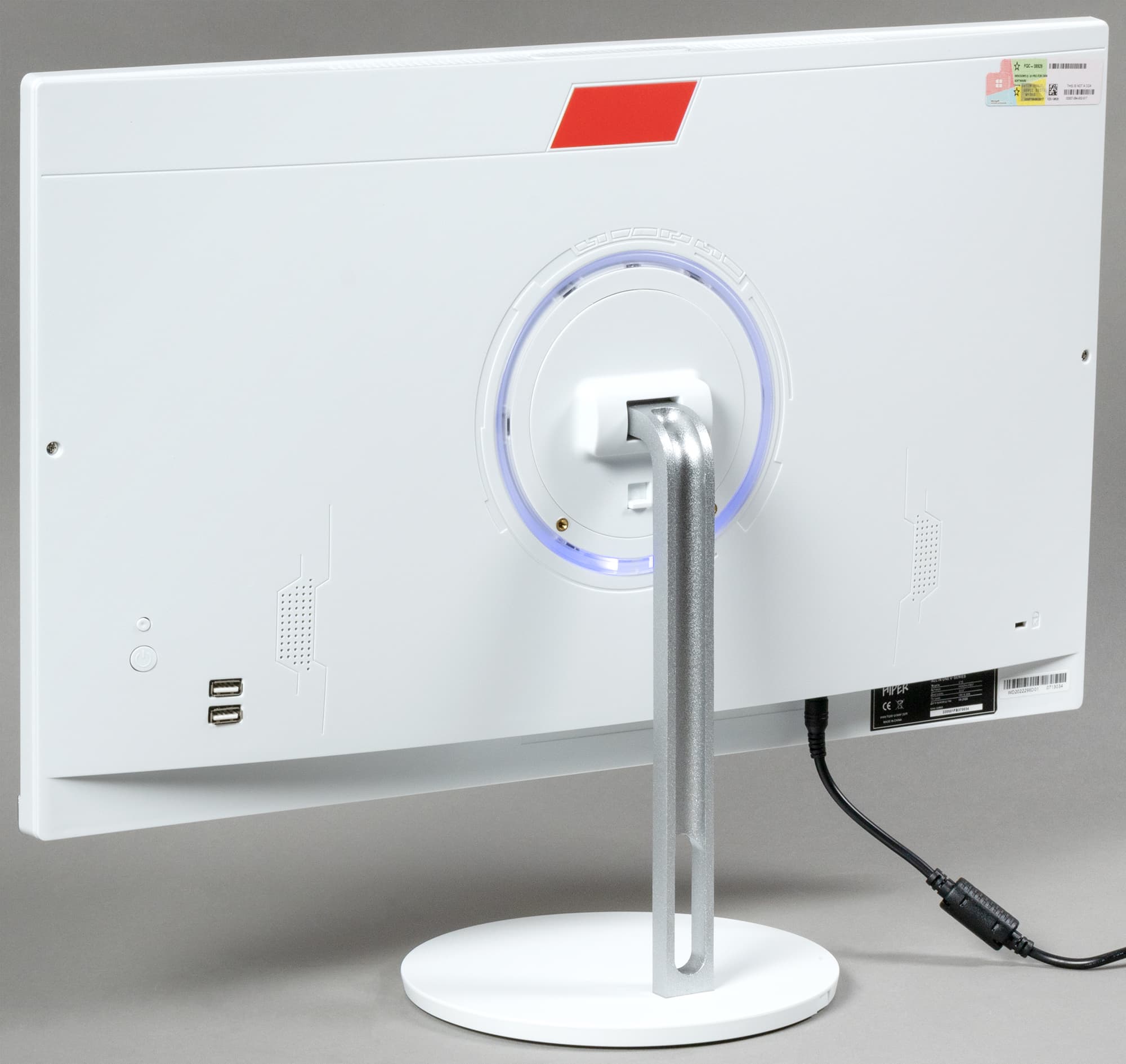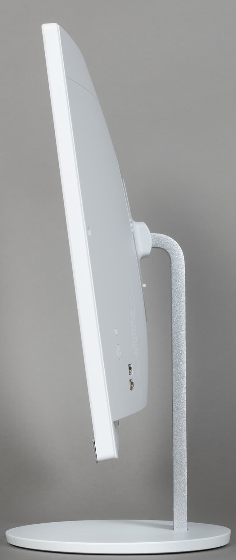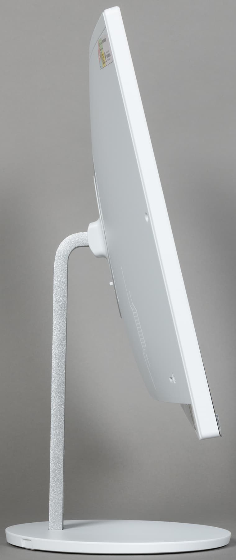 Регулируемой подставки здесь нет — штатная металлическая «нога» смотрится хорошо, но позволяет лишь немного отклонять моноблок от вертикали.