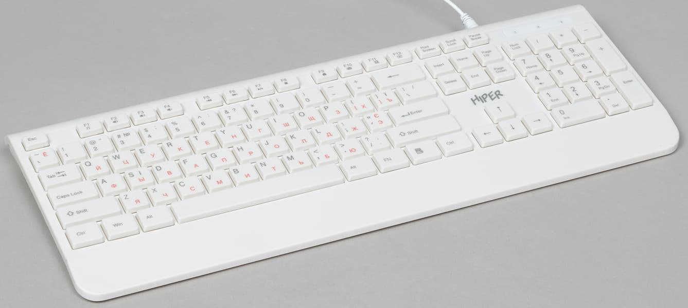 Так что верно все сказанное ранее — набор для того, чтобы приступить к работе сразу после покупки. Простая мембранная клавиатура с немного уменьшенным ходом клавиш и простейшая двухкнопочная мышь. Естественно, проводные. Розничная цена подобных — в пределе 1000 рублей (с запасом). Но это ни в коей мере не повод для критики: клавиатура и мышь — это как раз те устройства, которые выбирать нужно индивидуально. Всем — не угодишь. Почему в магазинах и лежит огромное количество разных устройств ввода (в том числе и Hiper) на любой вкус и кошелек.