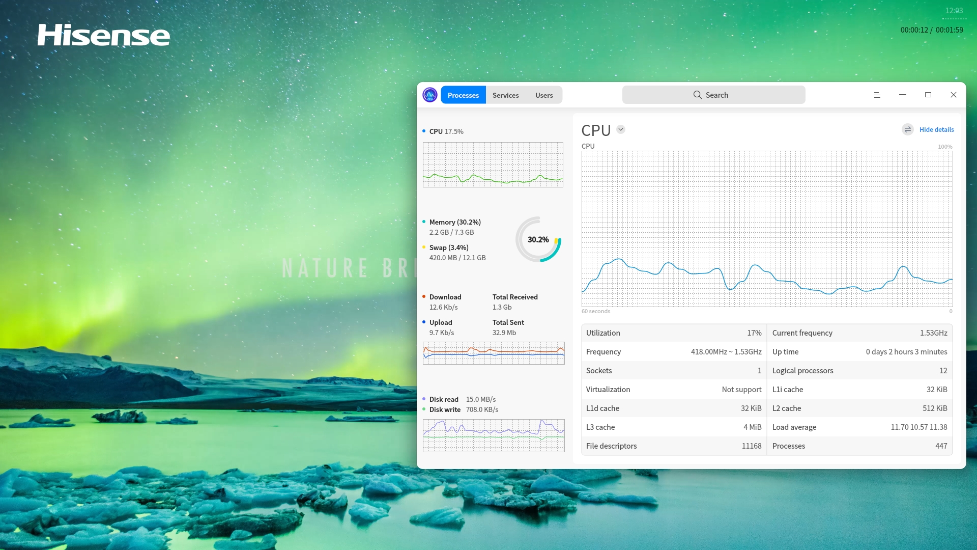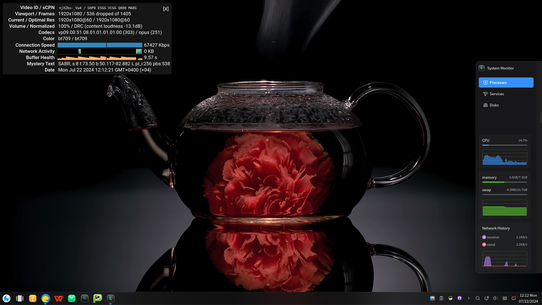Учитывая всё это, мы предполагали, что и с проигрыванием потоковых роликов дела обстоят столь же хорошо, но это оказалось не совсем так, и дело даже не в загрузке процессорных ядер. Да, загрузка CPU даже при просмотре 4K-роликов на Youtube не превышала 40%, но пропуски кадров были довольно ощутимы. Хотя это отмечалось при FullHD и 60 FPS, но даже с этими пропусками рывков на глаз особых не было заметно, а с 30 FPS было еще лучше. В 4K же разрешении при 60 FPS смотреть ролики и вовсе не нужно, так как пропускается примерно каждый второй кадр, и вот тут уже плавного воспроизведения не получалось. Так что итог аналогичный тому, что мы сделали в обзоре Loongson — мощности Kirin 9000C также более-менее хватает для разрешения Full HD.