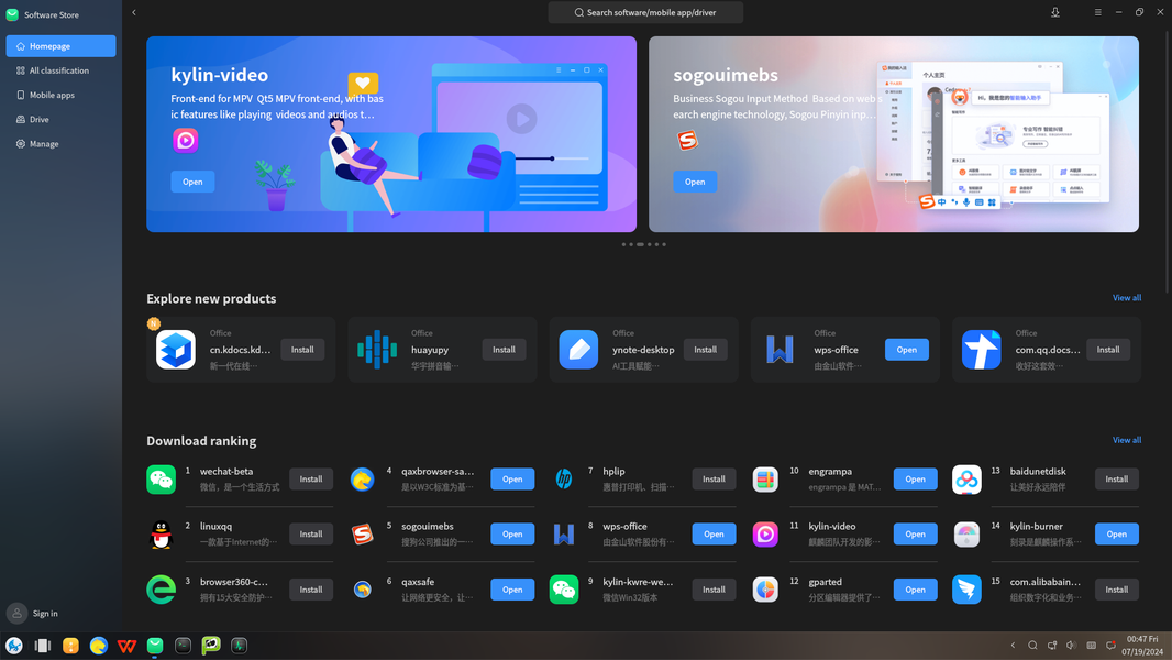 Магазины в обеих ОС достаточно продвинутые и предлагают ПО для разных применений, есть разделы по категориям, рейтингу и т. п., поддерживается автоматическое обновление, есть отзывы пользователей — всё как обычно. Но количество представленных в магазине программ не так велико, по сравнению с более популярными системами. Правда, в отличие от UOS на Loongson, тут есть полноценный офисный пакет — WPS Office, да еще в более новой версии, по сравнению с тем, что мы нашли в свое время для LoongArch64.