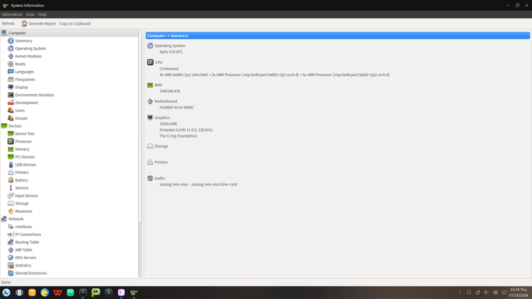 Кстати, производительность встроенного в Kirin 9000C видеоядра оказалась довольно близкой к тому, что мы видели на примере Loongson. В тесте GLmark2 при разрешении Full HD встроенный GPU в Loongson набирал в двухканальном режиме работы памяти 70 баллов, а GPU в Kirin — 88 в UOS и 74 в Kylin. Если рассматривать тест 2D-графики в утилите HardInfo, то это 1144 в UOS и 967 в Kylin против 4108 у Loongson. То есть многое зависит от ПО и степени оптимизации. В этом случае мы не пробовали установку дискретной видеокарты, так как не видим в этом особого смысла — в том числе из-за одного разъема PCIe x1.