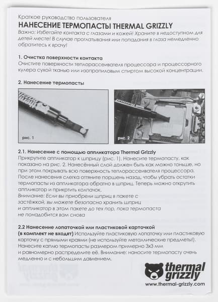 На сайте производителя для термопаст есть подробное описание, качественные изображения, а также ссылка на файл PDF с характеристиками. Для термопаст указаны варианты фасовки 3,5 и 7 г. Судя по изображениям, они различаются степенью наполнения шприца и, конечно, упаковкой. У нас на тестировании были варианты по 3,5 г. Упакованы шприцы с термопастой в прочные тубусы из плотного картона.