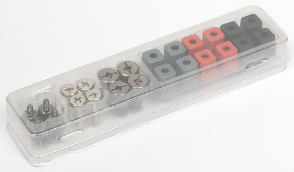 Для упаковки мелкого крепежа используется аккуратная коробочка из пластика.