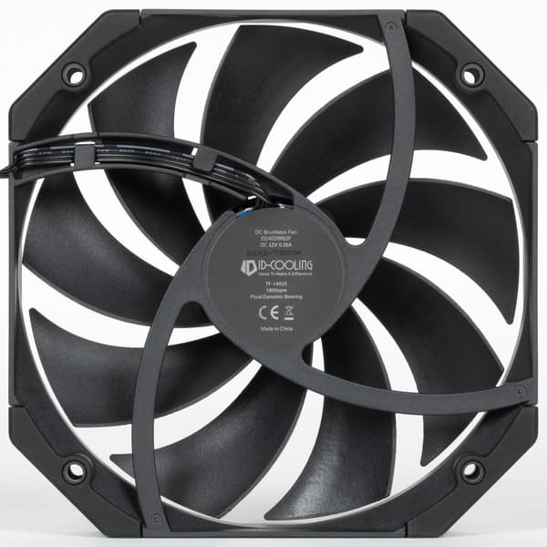 Вентиляторы крепятся типичными стальными скобками и поддерживают регулировку с помощью ШИМ.