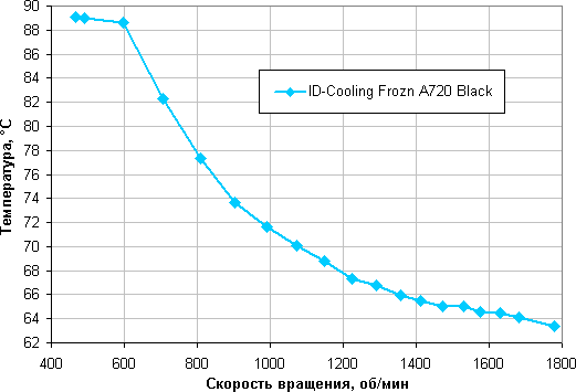 По факту в условиях теста этот процессор при 24 градусах окружающего воздуха перегревается при КЗ равном 20% (а это примерно 600 об/мин) и ниже, так как некоторые ядра нагреваются до критической для этого процессора температуры в 100 °C. В условия данного теста максимум потребления по дополнительным разъемам 12 В на мат. плате достигает 258 Вт.