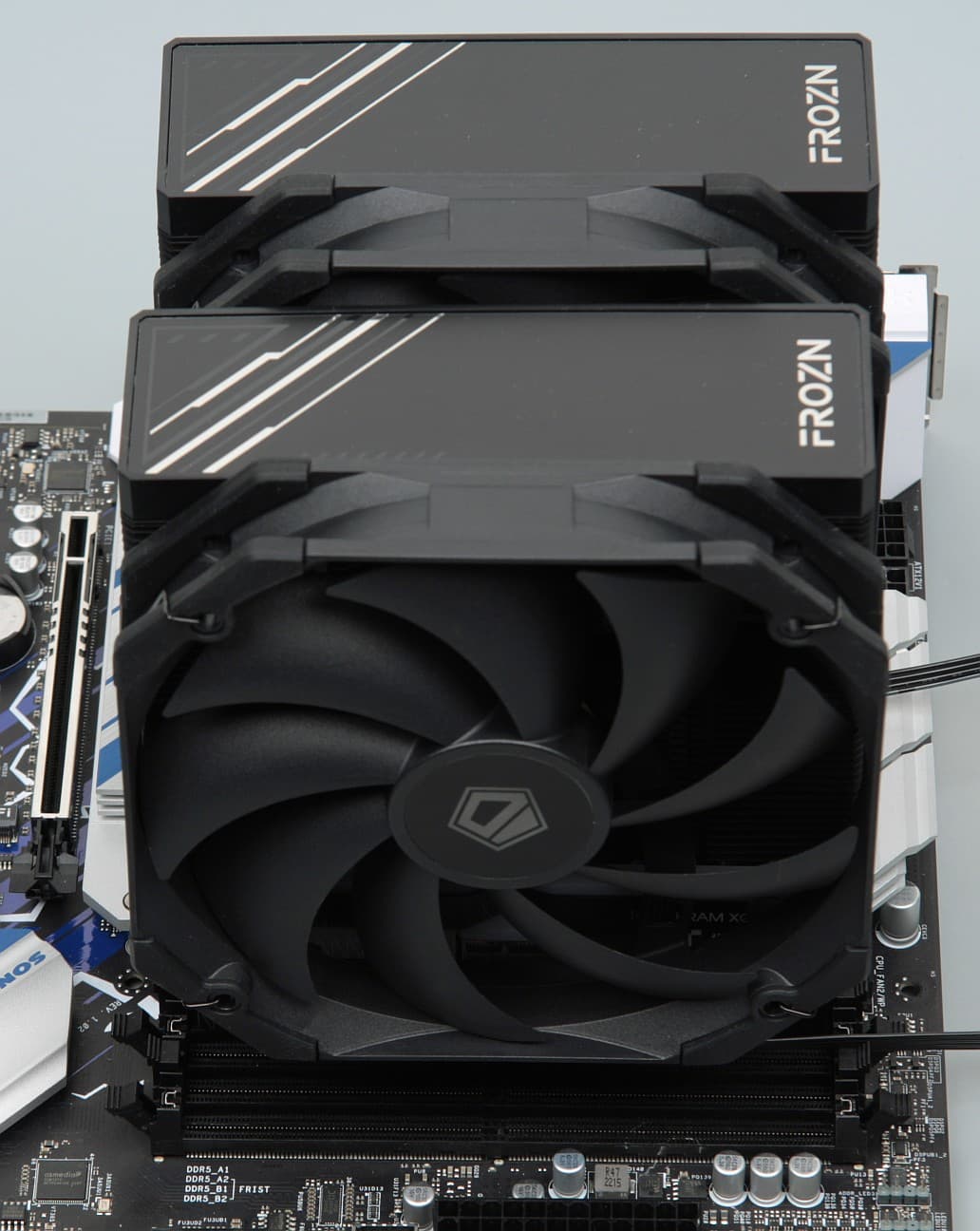 На основе воздушного кулера ID-Cooling Frozn A720 Black можно создать условно бесшумный компьютер (уровень шума 25 дБА и ниже), оснащенный процессором типа Intel Core i9-13900K, если потребление такого или подобного процессора под максимальной нагрузкой не будет превышать 179 Вт, а температура воздуха внутри корпуса не повысится выше 44 °C, и это с ограничением в 80 °C на максимальную температуру процессора. При снижении температуры охлаждающего воздуха, повышении порога температуры процессора (можно до 100 °C) или менее жестких требованиях к уровню шума пределы мощности можно увеличить. К достоинствам кулера следует отнести аккуратный дизайн. К недостаткам — ограниченную совместимость с высокими модулями памяти.