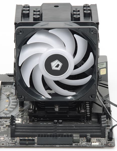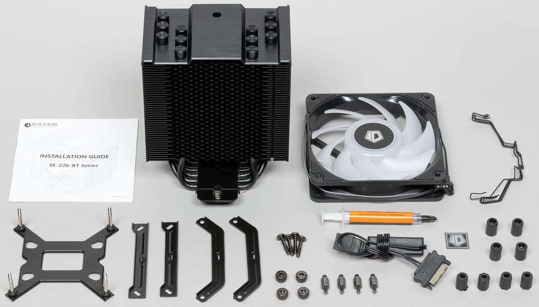На основе кулера ID-Cooling SE-226-XT ARGB можно создать условно бесшумный компьютер (уровень шума 25 дБА и ниже), оснащенный процессором типа Intel Core i9-7980XE (Intel LGA2066, Skylake-X (HCC)), если потребление процессора под максимальной нагрузкой не будет превышать 190 Вт, а температура внутри корпуса не повысится выше 44 °C. В случае чиплетного процессора AMD Ryzen 9 5950X эффективность кулера заметно ниже, и для соблюдения указанных выше условий максимальная мощность, потребляемая процессором, должна быть не выше 123 Вт. При снижении температуры охлаждающего воздуха и/или менее жестких требованиях к уровню шума пределы мощности во всех случаях можно увеличить. К достоинствам кулера следует отнести аккуратный дизайн, удобную установку и то, что он не перекрывает слоты для модулей памяти со стороны вентилятора, а с другой стороны радиатора в первый разъем можно установить модули высотой примерно до 64 мм, в следующие — уже без ограничения высоты. Любители моддинга оценят многоцветную и многозонную статическую или динамическую подсветку вентилятора, имеющую стандартное трехконтактное подключение.