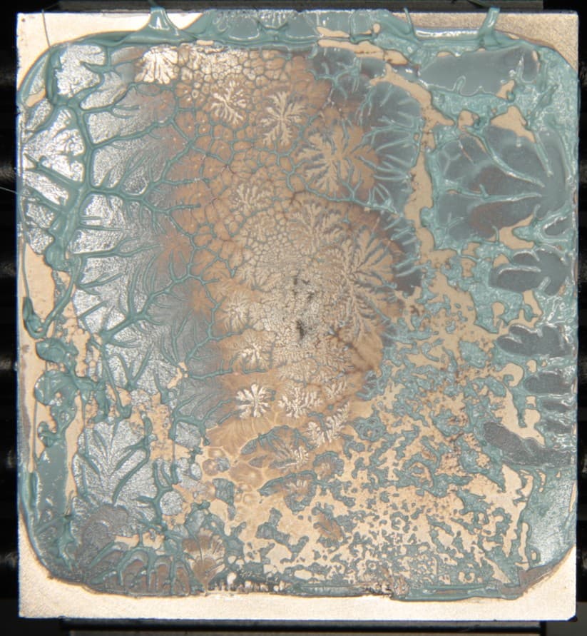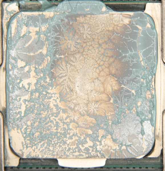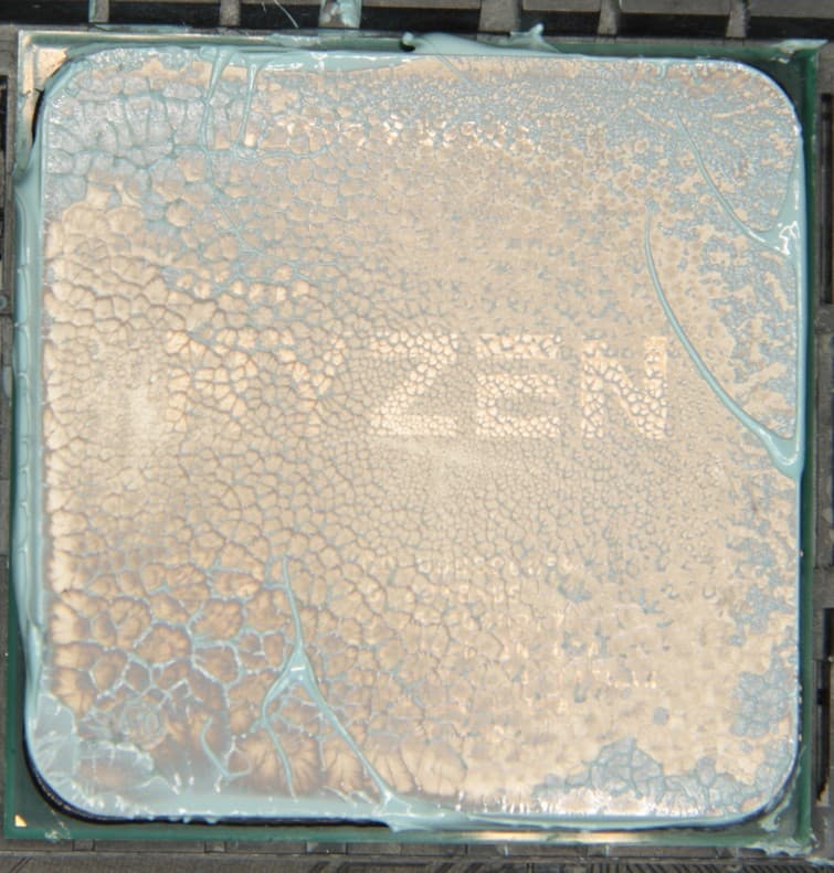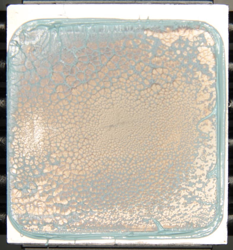 В тестах использовалась качественная термопаста другого производителя. Забегая вперед, продемонстрируем распределение термопасты после завершения тестов.