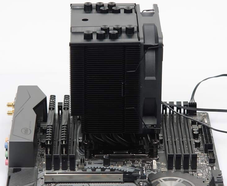 Со стороны вентилятора все разъемы для оперативной памяти остаются доступными для установки высоких модулей памяти. С другой стороны радиатора в первый разъем можно установить модули высотой примерно до 64 мм, в следующие — уже без ограничения высоты.