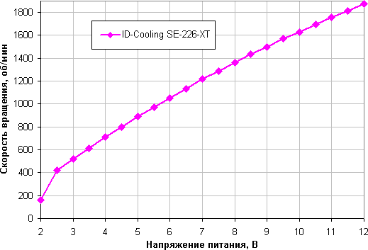 Диапазон регулировки с помощью напряжения заметно шире. Вентилятор останавливается при снижении напряжения до 1,8 В и запускается от 2,2 В. Вентилятор вполне допустимо подключать к источнику с напряжением 5 В.