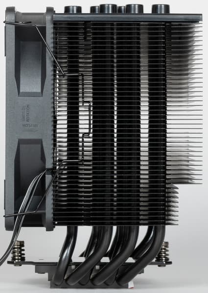 Вся поверхность радиатора, включая пластины, трубки и теплосъемник, но за исключением рабочей плоскости подошвы теплосъемника имеет черное матовое лакокрасочное покрытие. Это в какой-то степени улучшает теплоотдачу за счет излучения.