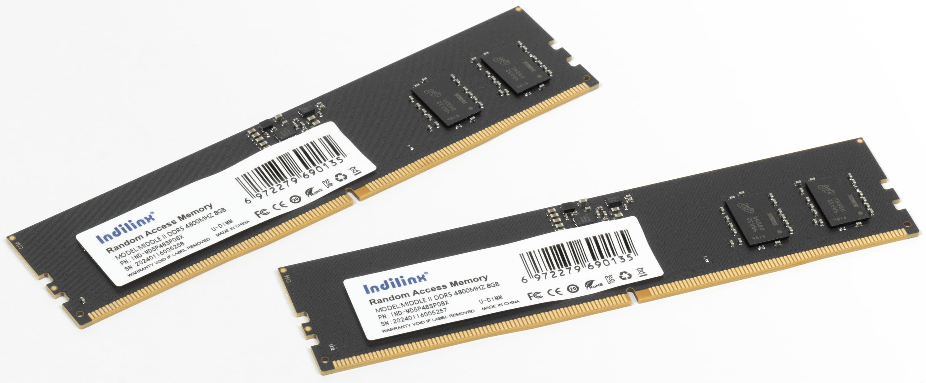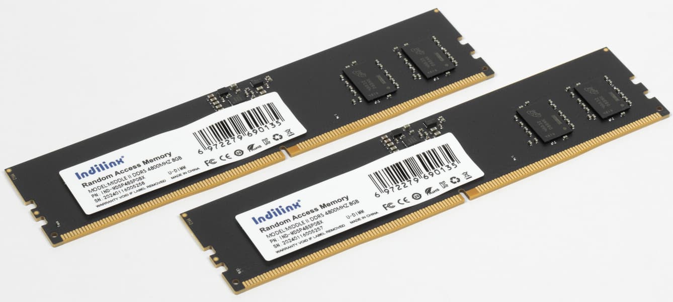 Что же касается модулей Indilinx IND-MD5P48SP08X, то это просто типичное для данного сегмента решение, благо нетипичным в нем взяться неоткуда. На самом деле, и в других сегментах от производителей самих модулей мало что зависит. Разве что внешний вид да правильный подбор компонентов. Иногда и отбор: чтобы сделать память с рекордными возможностями по разгону, не всякие чипы даже из одной партии подойдут. Да и пары модулей в комплекте подбирать приходится. А что из этого нужно для производства таких модулей памяти, которые стали предметом сегодняшнего рассмотрения? Примерно... ничего. Типовые платы, полное отсутствие радиаторов, простая схема питания, ориентация на низкие частоты. В общем-то, по результатам сразу видно, что подбирать что-то под высокие частоты нет смысла — тот случай, когда овчинка выделки не стоит, а покупателю точно лучше потратить деньги на модули большей емкости, чем на выжимание чего-либо выдающегося из таких. С DDR4 этот метод имел смысл, но DDR5 организована совсем по-другому. Поэтому модули на 8 ГБ, как уже было сказано, нужны только для минимизации цены невзирая на побочные эффекты. Вот по цене все покупатели их выбирать и будут. Может быть, еще по штатной частоте, хотя здесь она тоже не слишком важна.