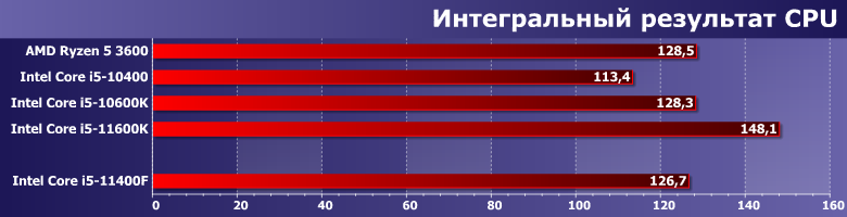 Общий итог — соответствующий. На деле неплохой, но Core i5-11400F и должен стоить не дороже Ryzen 5 3600, поскольку он и не быстрее. А вот из старой линейки линейки Core i5, пожалуй, смысл сохраняют только младшие модели — и только за счет цены. Впрочем, как показало наше недавнее игровое тестирование для многих сфер применения их как раз и достаточно. Но можно бегло прикинуть — что меняется теперь и здесь.