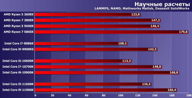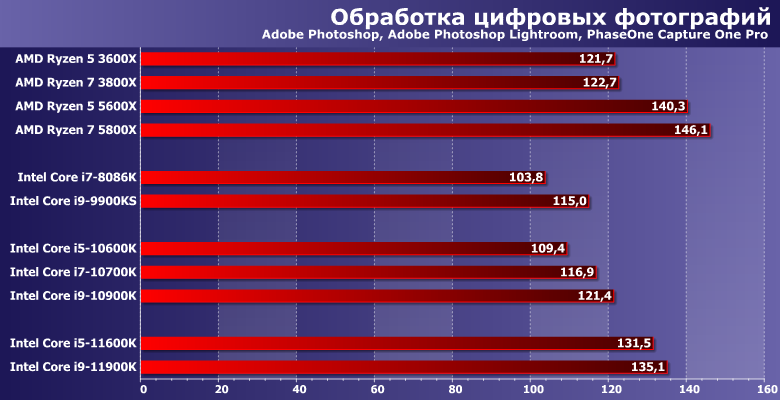Как уже не раз было отмечено, у всех старших моделей процессоров ядер даже больше, чем нужно этим программам — так что все выражается в сравнение микроархитектур с поправкой на тактовые частоты. А с этим у «одиннадцатого» поколения дела обстоят лучше, чем у «десятого» или «старых» Ryzen. Но, справедливости ради, хуже, чем у «новых». С другой стороны, это AMD пока еще обязательно нужно убедительно побеждать — Intel достаточно не слишком проигрывать. Решающее слово в таких условиях скажут реальные розничные цены и доступность процессоров. А на рынке готовых систем — еще и ситуация с видеокартами. Нынешняя — более благосклонна к Core: они-то без дискретной графики обходиться могут (не для всех задач такое подходит — но хотя бы как-то работает всегда), а старшие Ryzen — нет.
