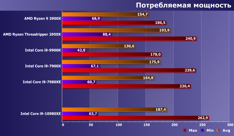 Увеличение частот и прочие «радости» обходятся не бесплатно. В принципе, Skylake-X и ранее-то были одними из самых «прожорливых» процессоров, уступая разве что Ryzen Threadripper. Аппетит же Cascade Lake стал еще более лучшим, так что и с процессорами для TR4 в какой-то степени иногда наблюдается паритет. На этом фоне, кстати, забавно выглядят претензии к Ryzen 9 или там Core i7/i9 под LGA1151: дескать, жрут много. По сравнению с некоторыми — они на жесткой диете.