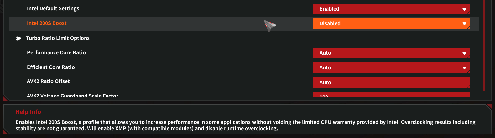 Такой разгон работает только на процессорах К-серии, вышедших в первой волне, включая рассматриваемый сегодня Core Ultra 5 245KF. Удивительно, но «200S Boost» не повышает тактовые частоты ядер процессора, а оптимизирует важные для игр и другого ПО параметры: частоту системной шины (System-on-Chip), которая повышается с 2,6 ГГц до 3,2 ГГц, скорость межкристальных соединений (Die-to-Die), которая увеличивается с 2,1 ГГц до 3,2 ГГц, и частоту оперативной памяти DDR5, которая повышается с 6400 МТ/с до 8000 МТ/с — в случае соответствующих модулей с XMP-профилями. Видимо, в последнем пункте как раз и заключается основная польза, и для максимальной эффективности этого разгона нужна быстрая оперативная память, кроме того поддерживается только конфигурация с одной планкой памяти на канал. Мы проверили работу технологии в нескольких играх и не получили особенно сильного улучшения производительности, требующего отдельного упоминания — с учетом того, что память можно разогнать и без всего этого.