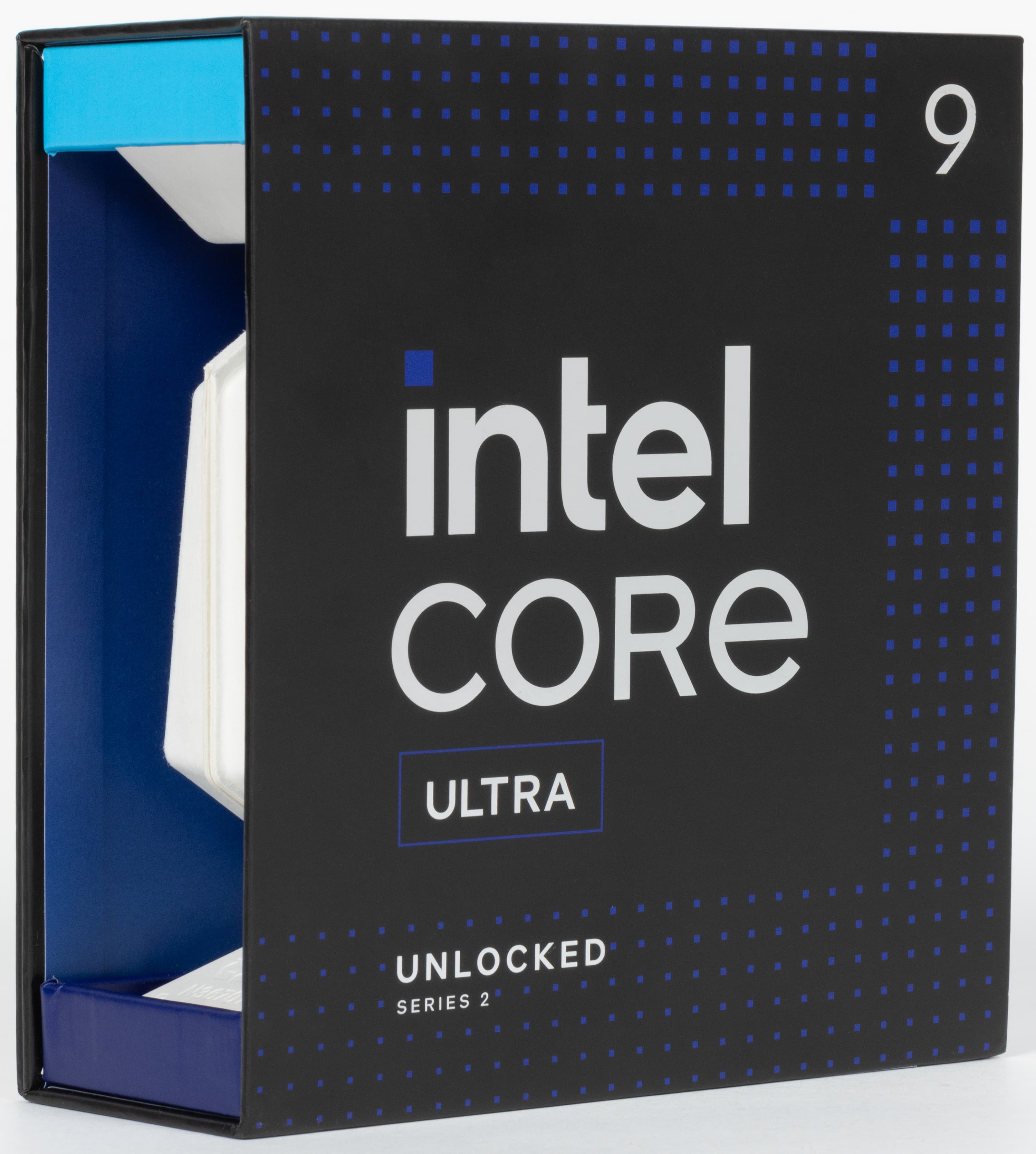 Процессор Intel Core Ultra 9 285K поставляется в привычной для компании упаковке — симпатичной коробке не слишком большого размера, в которой нет комплектной системы охлаждения. Сам процессор очень похож на процессоры предыдущей серии, но лишь на первый взгляд: хотя их габаритные размеры одинаковы, расположение пазов для установки у них разное, как и дополнительный 151 контакт у нового CPU за счет элементов в середине. В остальном установка процессора LGA1851 в разъем такая же, как у LGA1700.