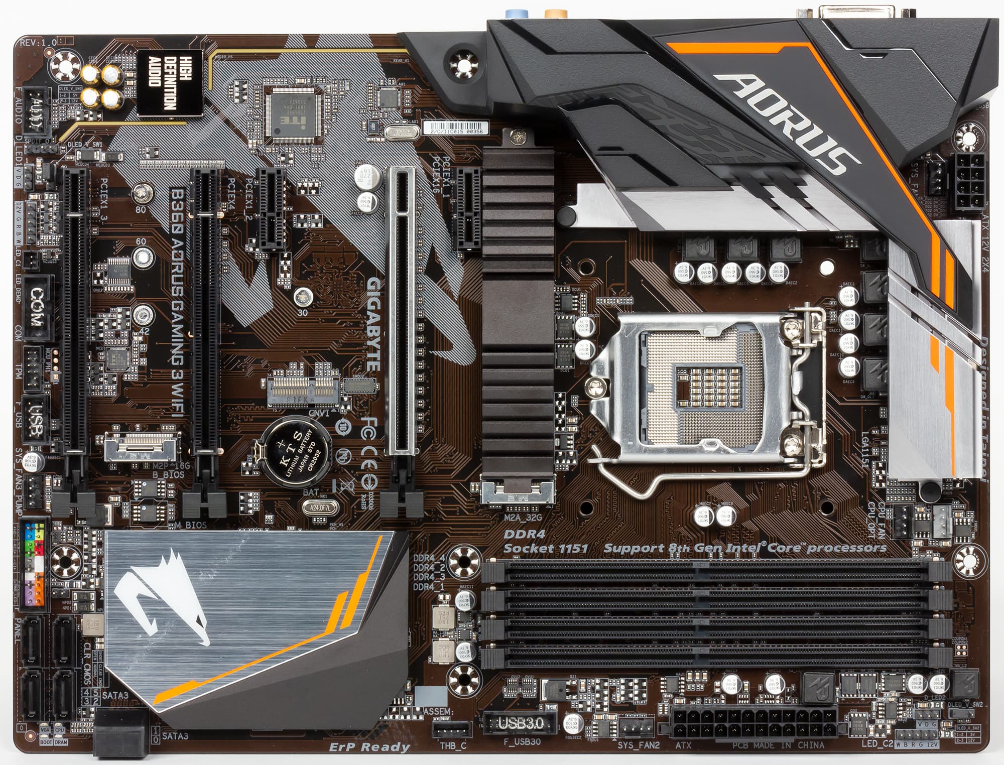 Примером недешевой платы на чипсете Intel B360 может быть плата Asus ROG Strix B360-F Gaming, у которой богатый набор слотов и разъемов или, например, плата B360 Aorus Gaming 3 WiFi с CNVi Wi-Fi-модулем.