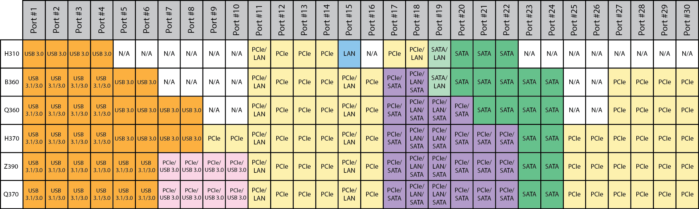 | Q370 | Z390 | Z370 | H370 | Q360 | B360 | H310 | |