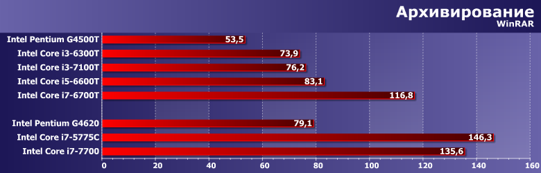 Да и при архивировании данных i5-6600T если чем-то и поражает, то только в отрицательном смысле. В отличие от i7-6700T, где все наоборот.