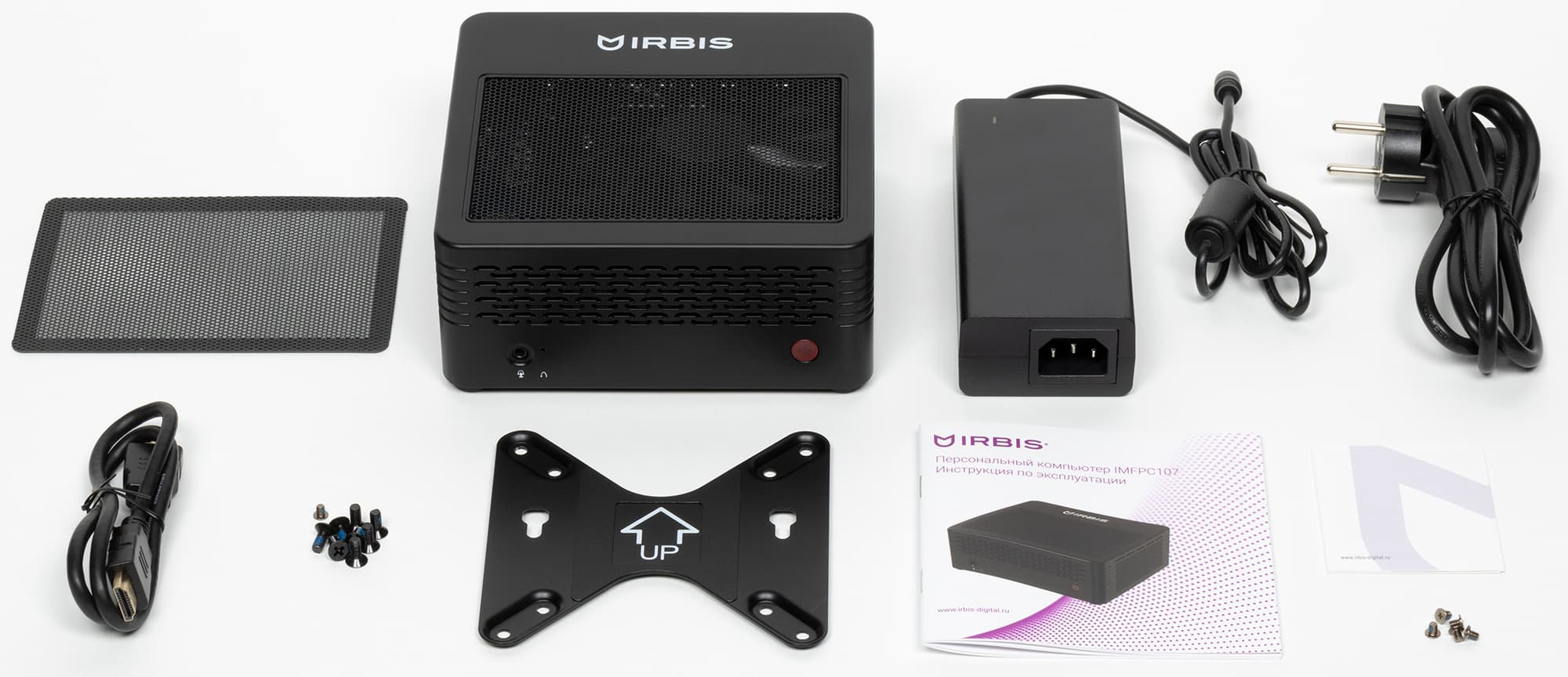 В общем, по совокупности такие мини-ПК очень интересны, особенно для дома, где может пригодиться быстрая графика. Такой компьютер мы сегодня и будем изучать. На первый взгляд, он достаточно скромный — сам производитель на сайте вовсе именует его «неттопом», хотя многие этот термин стараются уже не использовать из-за ассоциаций со старыми «атомными» линейками. Но первое впечатление обманчиво: на самом деле Irbis IMFPC107, пожалуй, мощнее даже среднестатистического десктопа.