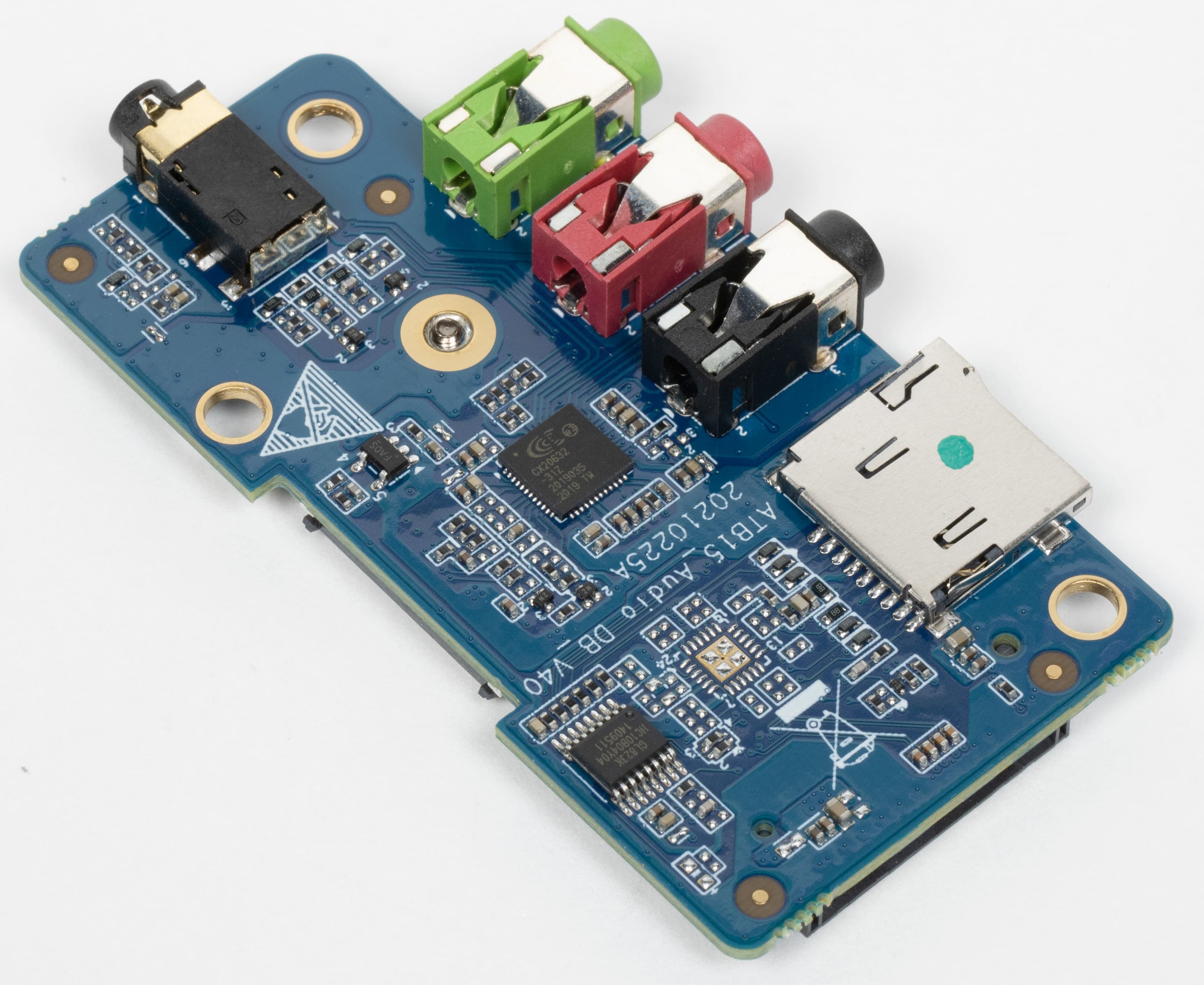 На платке с дополнительным М.2 главное не он, а аудиоинтерфейс и соответствующие разъемы. Строго говоря, Conexant CX20632 — это не только ЦАП/АЦП, но и встроенный усилитель для наушников, что можно считать дополнительным плюсом. Для подключения требуется порт USB 2.0, но в процессоре таковой есть, к нему подключен двухпортовый хаб Genesys Logic GL850G, а на его исходящих портах уже «висят» ЦАП и картовод. Схема рабочая, но вряд ли оптимальная: раз уж хаб всё равно ставили, так имело бы смысл взять четырехпортовый и добавить на корпус пару портов USB 2.0, коих хватило бы для мыши с клавиатурой. А еще лучше было бы оставить встроенный порт для CX20632, а «расщеплять» — порт USB3. Тогда хватило бы не только для мыши с клавиатурой, да и с картами можно было бы работать на нормальной скорости. Наконец, можно было просто сэкономить и на хабе, и на таком небыстром картоводе. Фактически любой из этих трех подходов лучше выбранного — не функциональностью, так ценой. Но нас, конечно, никто из разработчиков не спрашивал, а у них могли быть какие-то свои неочевидные резоны.