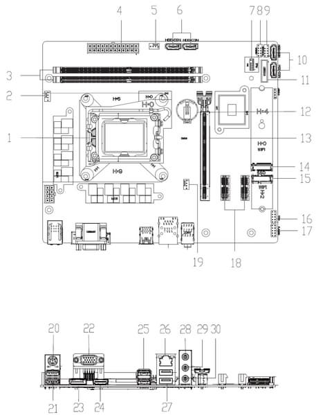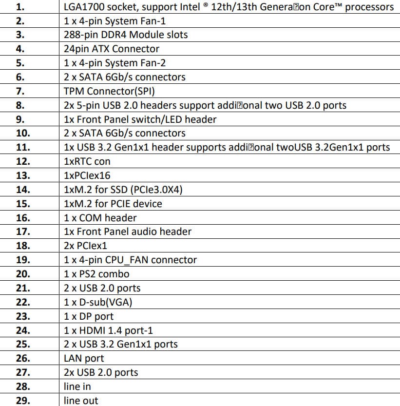 | Разъемы для накопителей | 4 × SATA 6 Гбит/с (H610) 1 × M.2 (H610, PCIe 3.0 x4 для устройств формата 2242/2280) |