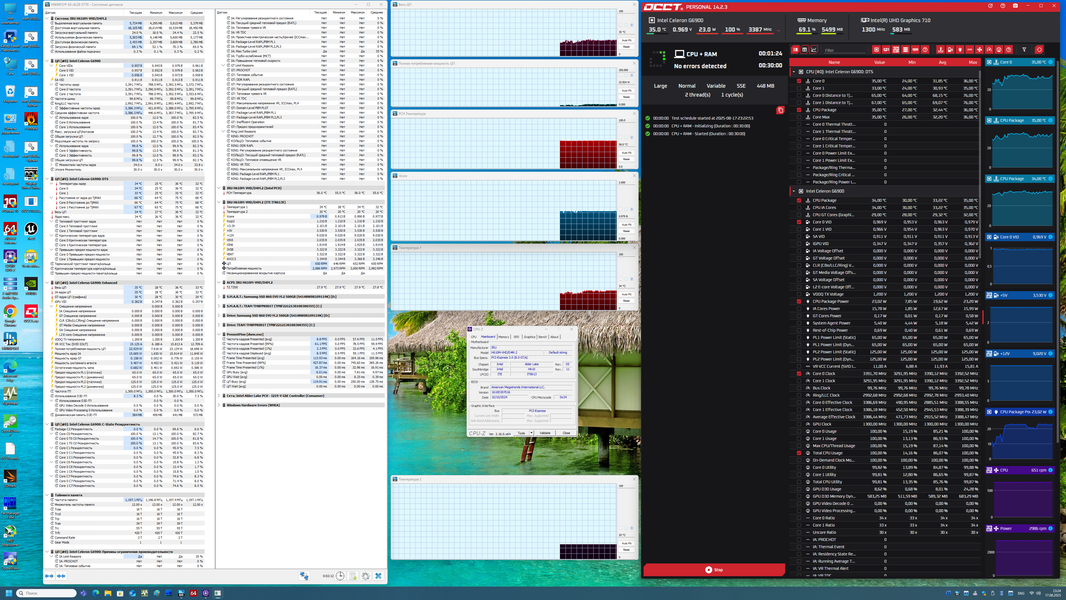 Разумеется никаких чудес ждать от чипсета такого уровня и от очень скромной системы питания нельзя! Авторазгона практически нет. Но и так понятно, что для таких материнских плат годны процессоры малобюджетного уровня (ну или среднебюджетного). Все параметры системы при стресс-тесты были в норме.