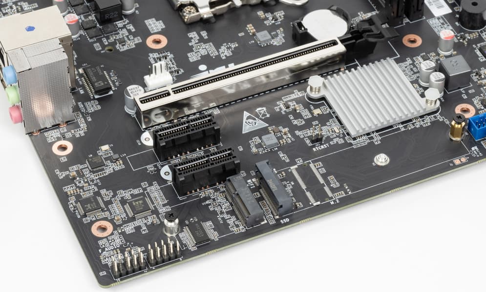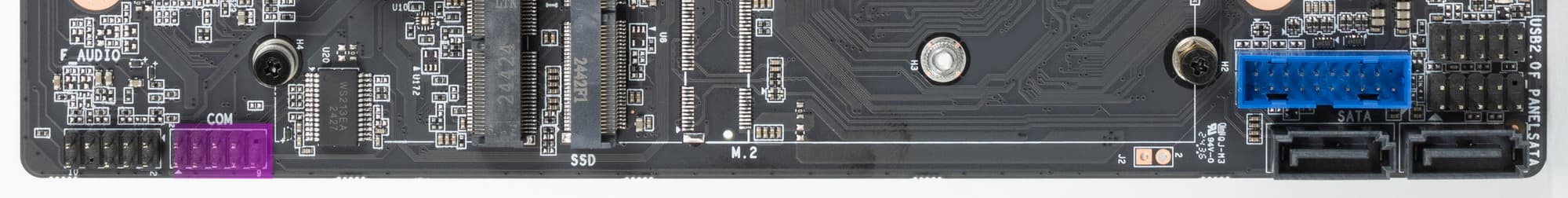 Материнская плата имеет 1 слот форм-фактора М.2, который получает данные от H610, работает с модулями с интерфейсом PCIe 3.0, а также поддерживают размеры модулей 2242/2280.