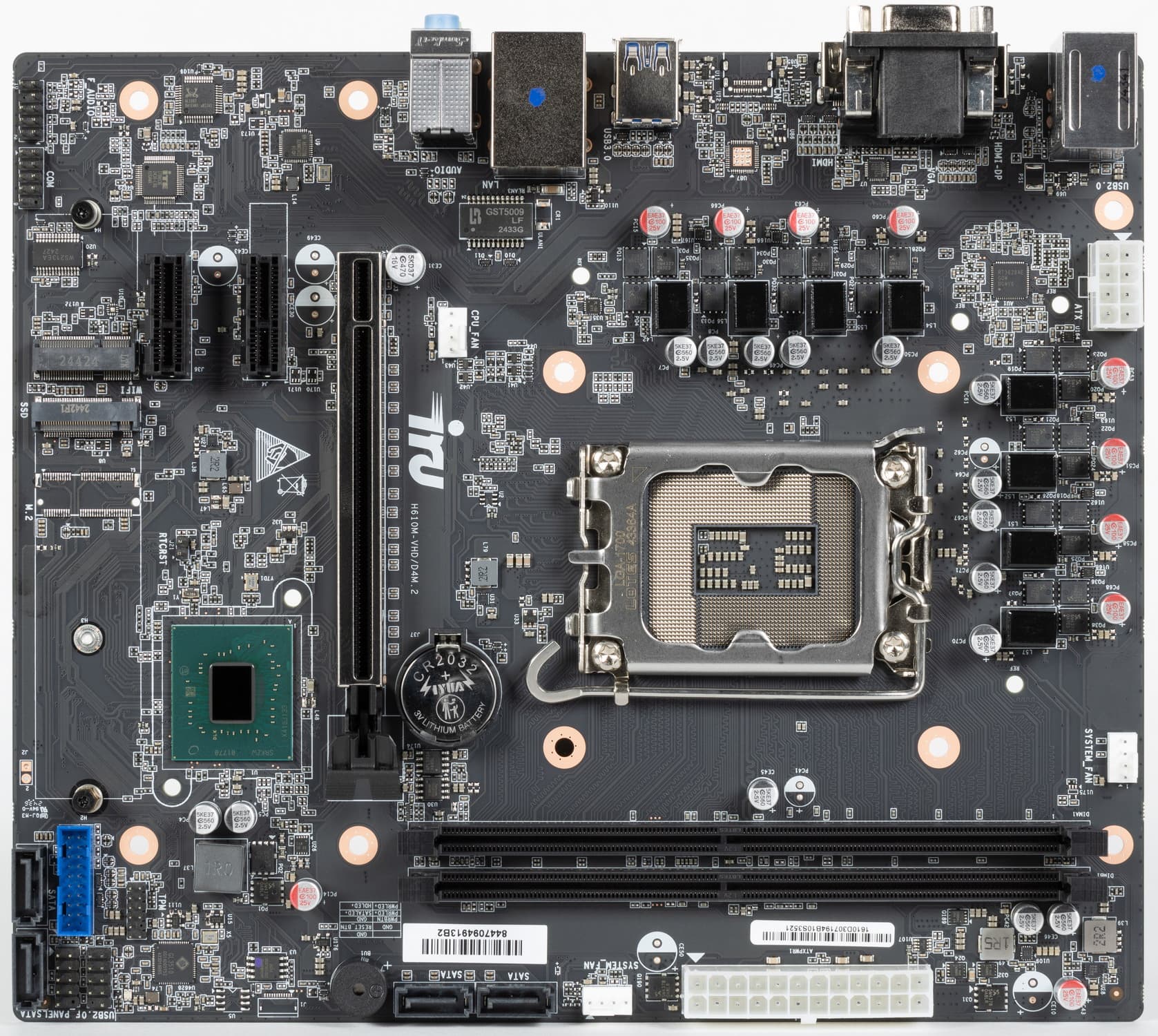 В этот раз впервые в нашей лаборатории появилась материнская плата от российской компании iRU, разумеется, основанная на Intel H610. Несмотря на то, что данный продукт предназначен в первую очередь для сборщиков ПК, таких матплаты можно найти и в розничной продаже.
