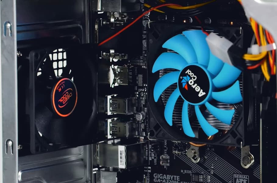При работе компьютера отчетливо слышен шум вентилятора, но вовсе не процессорного кулера, который автоматически управляется системной платой и в реальных условиях очень тихий, а маленького вентилятора на задней стенке, который подключен напрямую к БП и работает довольно громко.