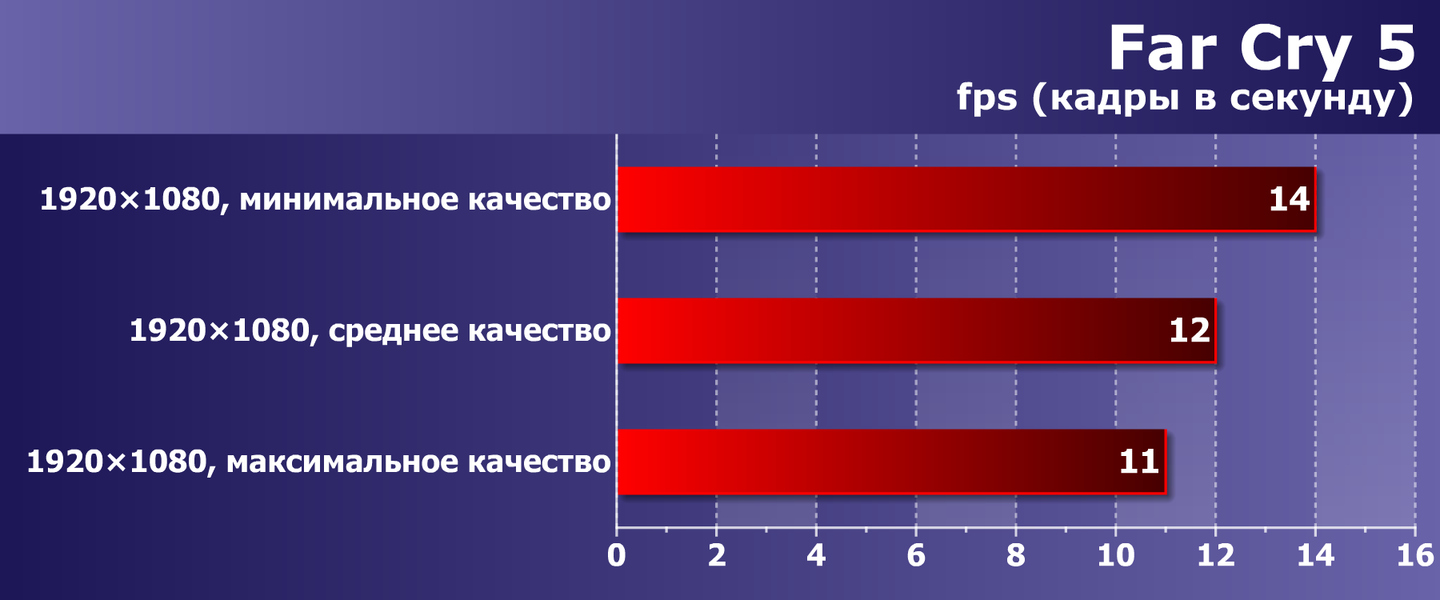 Например, если взять такой популярный 3D-шутер, как Far Cry 5, то производительности системы в нем совершенно недостаточно, придется снижать разрешение.