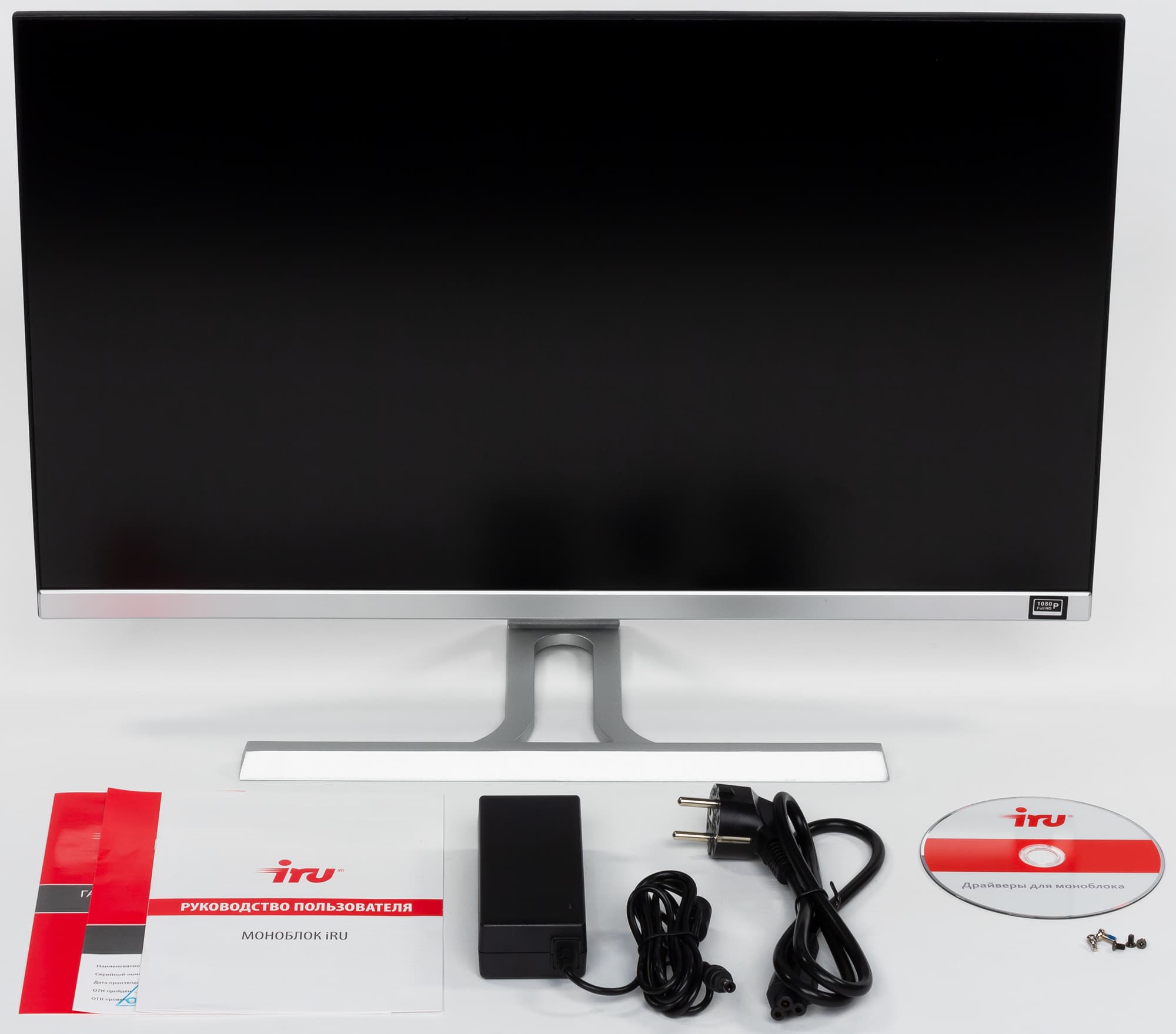 Моноблок поставляется в небольшой серой коробке, где, кроме него, можно обнаружить разве что блок питания, диск с драйверами (практически бесполезный ввиду отсутствия оптического привода и «стандартности» конфигурации), да гарантийный талон и очень краткое руководство пользователя.