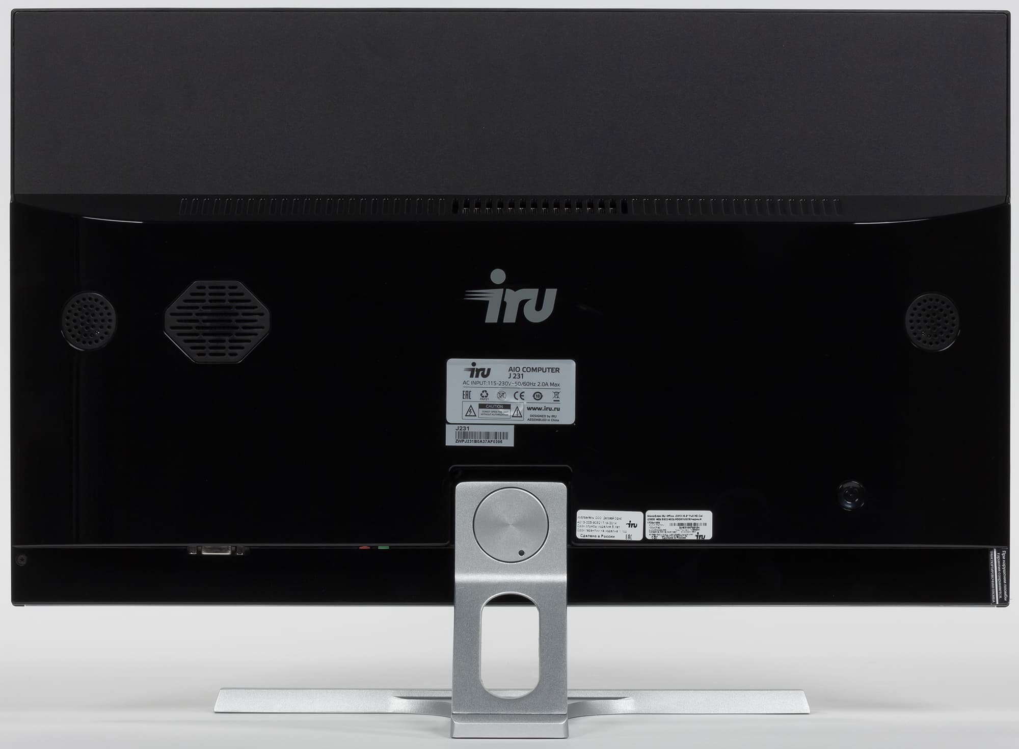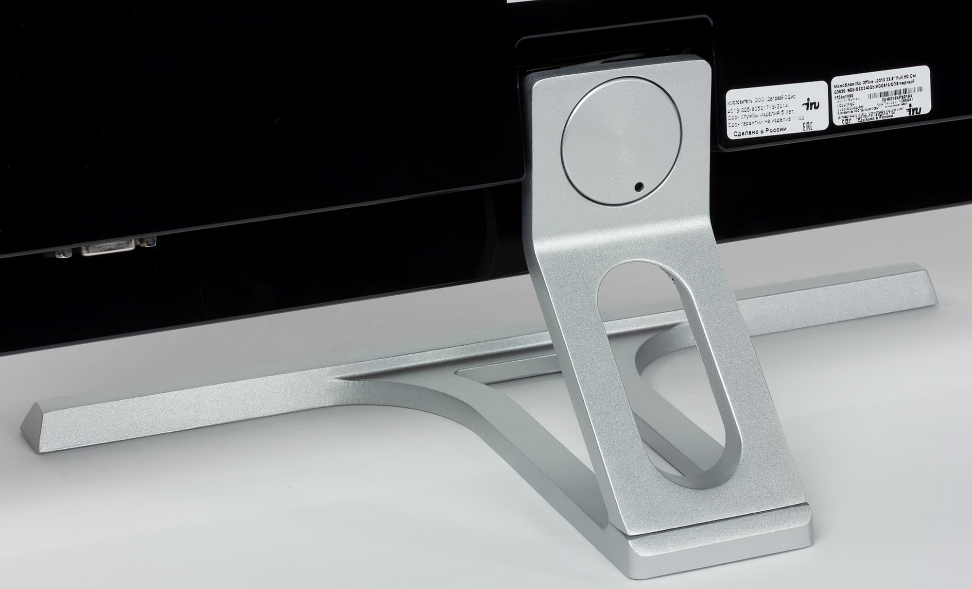 Описывать дизайн моноблочных компьютеров — задача неблагодарная: по сути это монитор, куда заодно встроен и компьютер. Когда-то, впрочем, такие ПК существенно отличались от «чистых» мониторов большей громоздкостью — сейчас эта проблема осталась в прошлом. Отличить J2313 от современного монитора с той же диагональю и «безрамочным» дизайном (рамки на самом деле есть, но три из них очень тонкие) можно только по чуть-чуть большей толщине: 43 мм вместо ~20-25 мм. Да и то — в самой толстой части, по которой легко оценить размер собственно «компьютера»