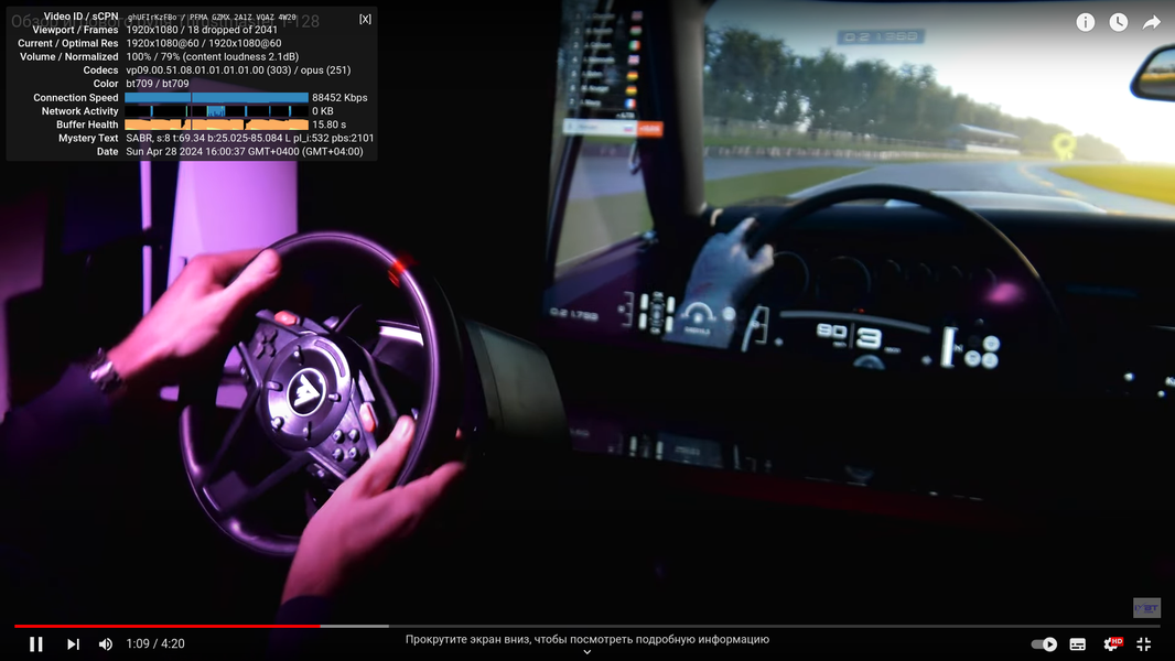 Учитывая подобные возможности (точнее — их отсутствие) встроенного GPU, вовсе не удивительно, что и с проигрыванием потоковых роликов дела обстоят довольно печально. Мы тестировали еще во времена полноскоростного Ютуба, и если с декодированием и выводом роликов в Full HD даже при 60 FPS система справляется (правый скриншот), пропущенных кадров очень немного, то в 4K при 60 FPS смотреть толком не получалось — пропускается каждый второй кадр, и плавного воспроизведения достичь не удалось. В общем, снова подтверждается вывод из «офисной» части обзора: мощности системы на базе Loongson вполне хватает для разрешения Full HD, но недостает для чего-то большего.