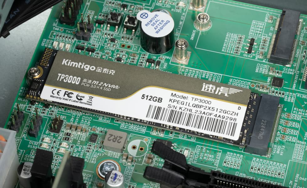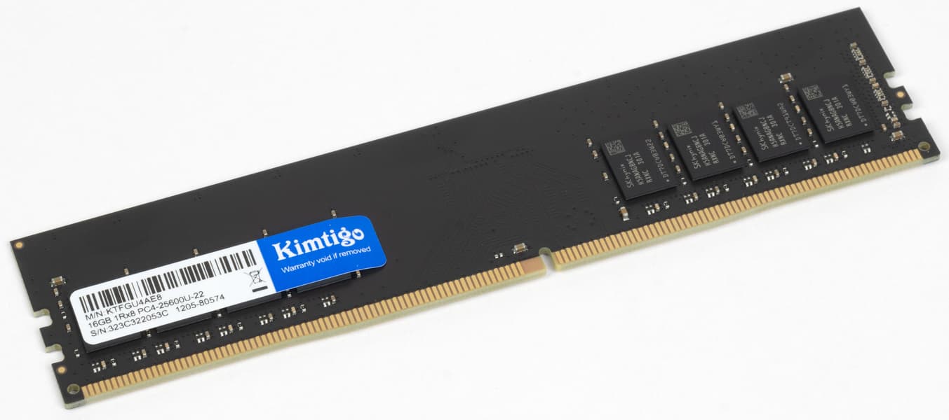 Система оснащена твердотельным накопителем Kimtigo TP3000 объемом 512 ГБ и одним модулем оперативной памяти DDR4-3200 той же компании Kimtigo, имеющим объем 16 ГБ и тайминги CL22. На плате есть два разъема для памяти, и контроллер Loongson 3A6000 умеет работать в двухканальном режиме, поэтому лучшим выбором была бы установка двух модулей, но в таком случае производителю нужно подбирать совместимые комплектующие, которые заработают на достаточно высокой частоте — далеко не любые модули способны на работу в двухканальном режиме DDR4-3200, а никаких настроек памяти в BIOS Setup нет.