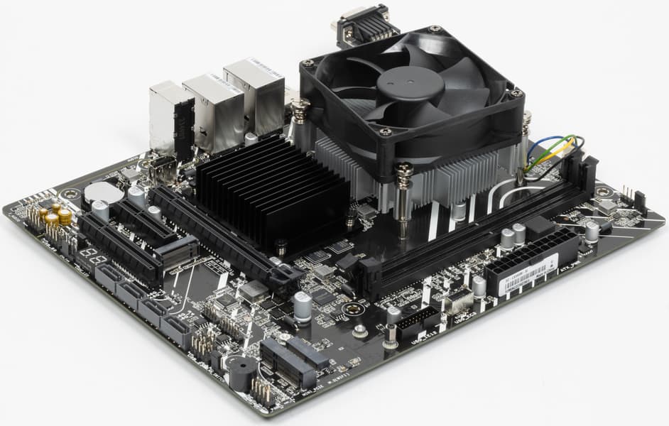 Всё остальное в системе вполне привычно для простеньких ПК, есть достаточное количество разъемов: слоты PCIe x16, x8 и x4, четыре SATA-порта, слоты M.2 2280 и 2230, а также Ethernet-розетка, видеовыходы HDMI и VGA, кучка USB-портов (3.0 и 2.0) на передней и задней панелях. Там же есть и аудиоразъемы. А из необычного по современным меркам можно отметить разве что COM-порт, полезный в некоторых специфических применениях, вроде разработки ПО для различных контроллеров.