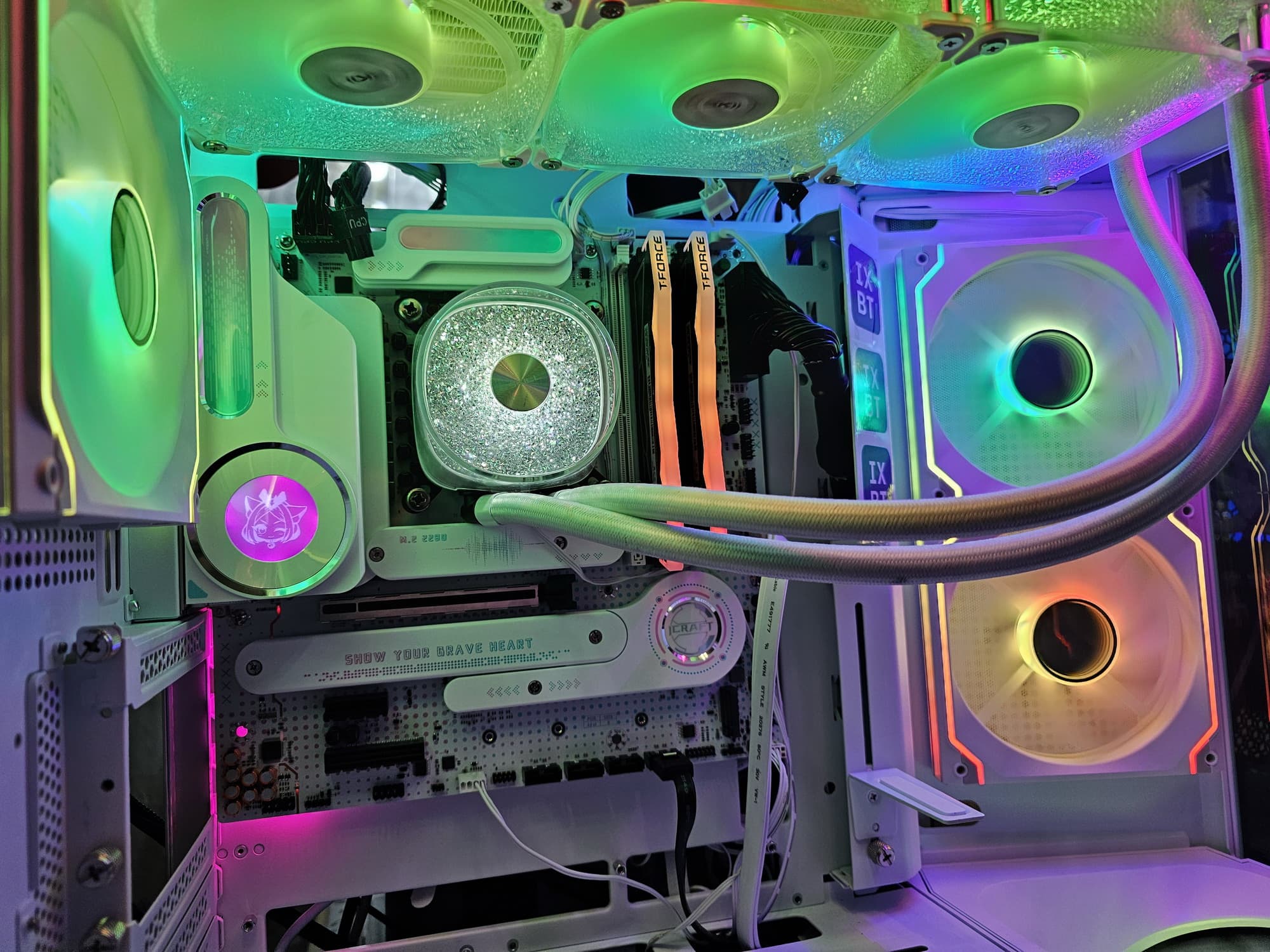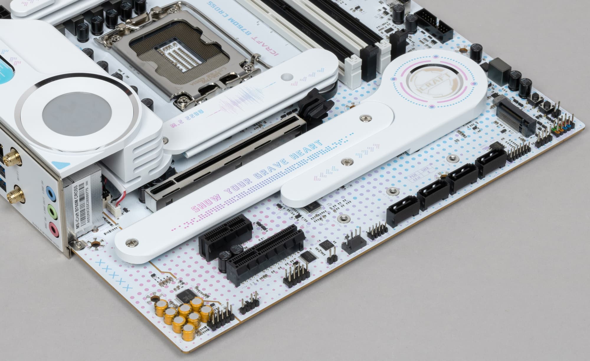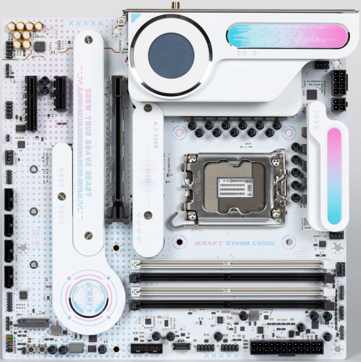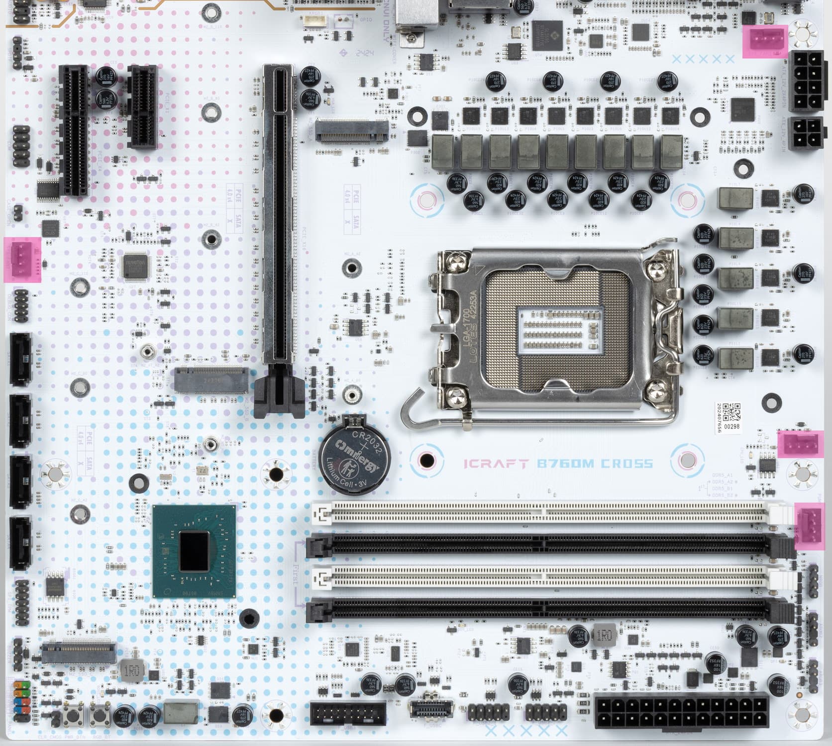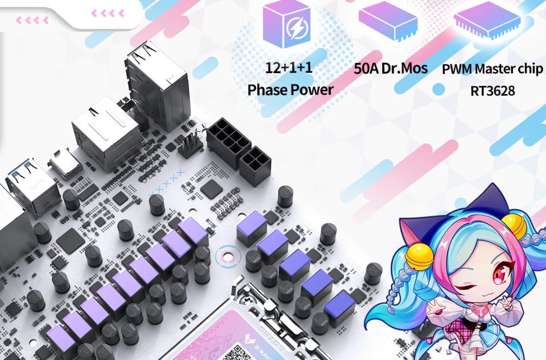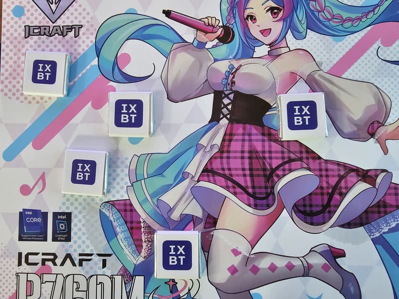 Материнская плата Maxsun iCraft B760M Cross — интересный и специфически красивый (для любителей образов из анимационных сериалов) представитель топовой игровой серии iCraft, основанный при этом на бюджетном чипсете. На момент публикации обзора плату можно приобрести в России по цене от 20 тысяч рублей, а на маркетплейсах есть предложения и до 20 тысяч. Понятно, что данная модель создана для корпусов с прозрачными стенками, грех прятать такую красоту!