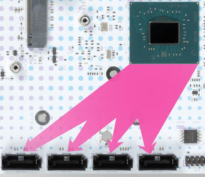 - наличие 4х портов SATA идет в дополнении к 14 линиям PCIe;