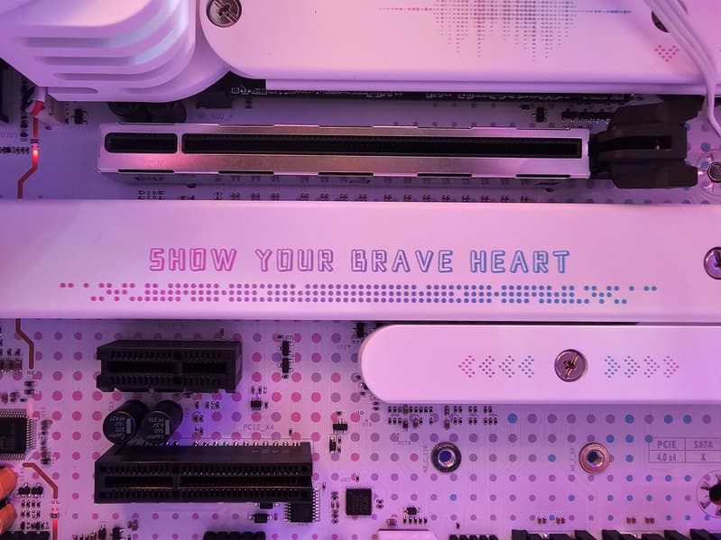 Верхний слот PCIe x16 имеет металлическое армирование из нержавеющей стали, которое увеличивает надежность (что может быть важным в случае довольно частой смены видеокарт, но что более важно: такой слот легче выдержит нагрузку на изгиб в случае установки очень тяжелой видеокарты топового уровня. Кроме того, такая защита предохраняет слот от электромагнитных помех.