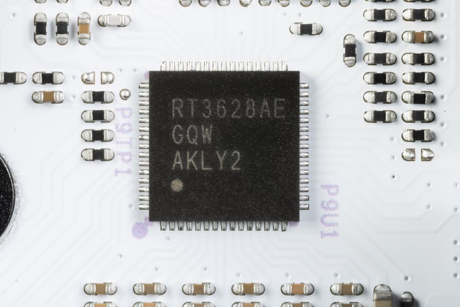 Управляет схемой питания VCore и iGPU ШИМ-контроллер RT3628 от Richtek, рассчитанный максимум на 8 фаз. Поэтому схема питания VCore использует параллельное управление: 6х2, плюс 1 фаза на iGPU – всего физических 7 фаз.
