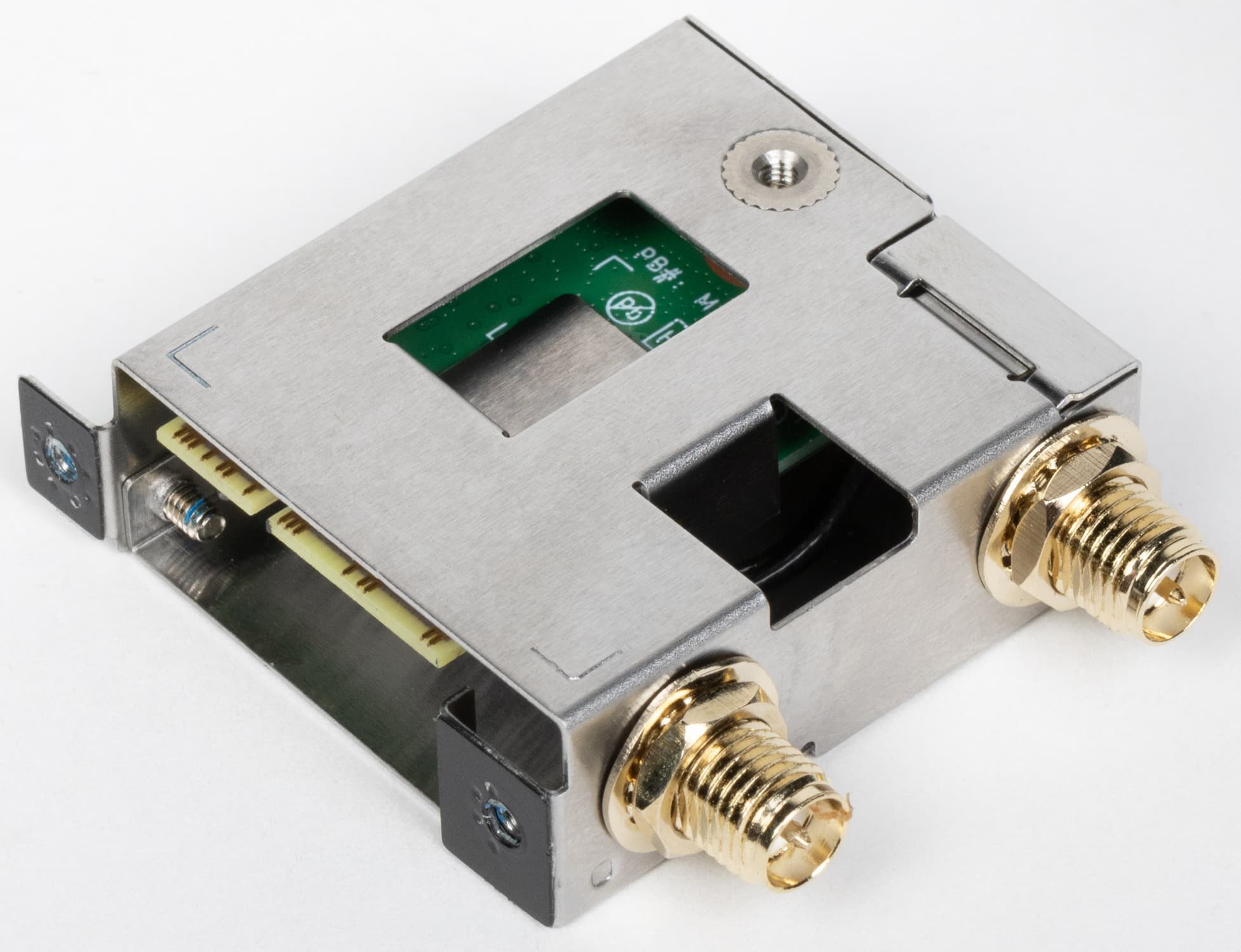 Заглушка, традиционно надеваемая на заднюю панель, в данном случае уже надета, и изнутри экранирована для снижения электромагнитных помех.