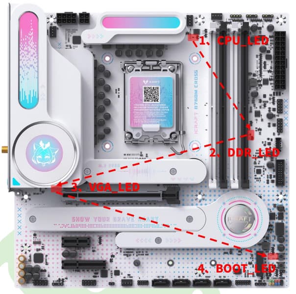 Если после включения компьютера к моменту перехода на загрузку ОС все индикаторы погасли, то проблем нет. К сожалению, данные индикаторы разбросаны по всей плате, а не в едином месте.